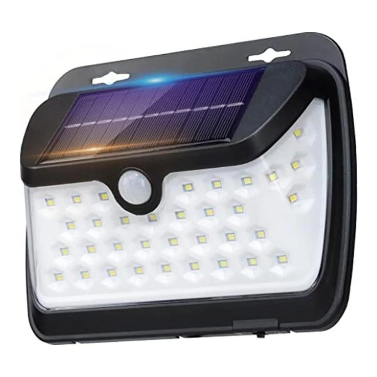 Luz solar del sensor de movimiento: luz de inundación de movimiento con 38 LED brillantes, un brillo de 150 lúmenes, 15 W y un tiempo de funcionamiento de 12 horas con una carga de un día. Luces brillantes con sensor solar para exteriores sin necesidad de cables, listas para salir de la caja, simplemente configúrelo y olvídalo.