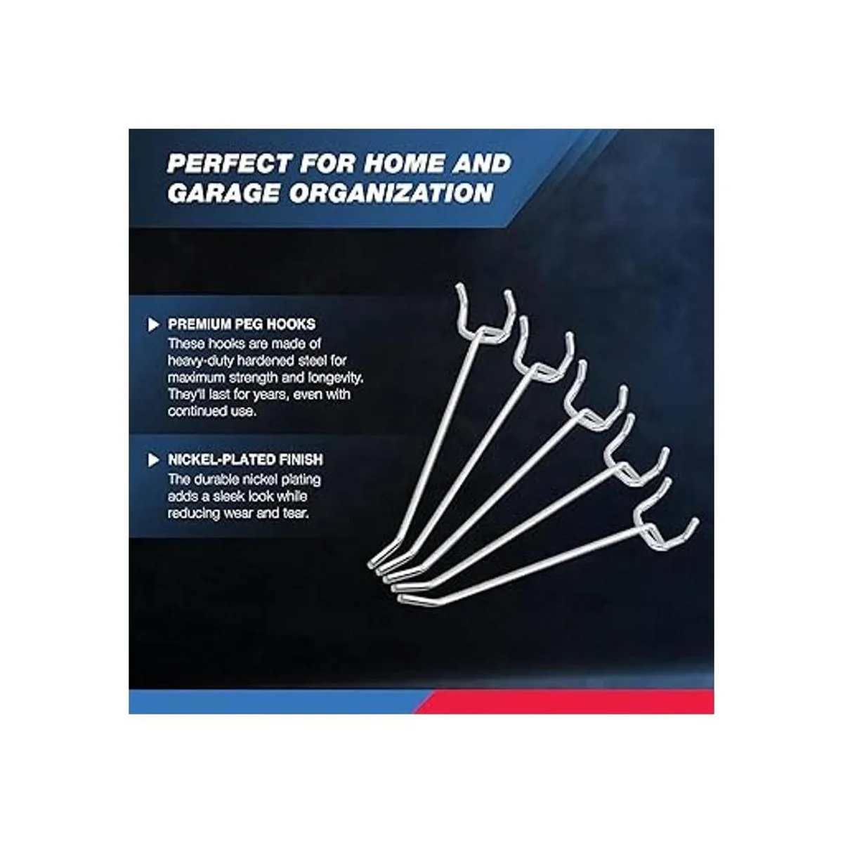 Ganchos de clavija de alta calidad: los ganchos de tablero de clavijas están hechos de acero endurecido resistente que proporciona la máxima resistencia y longevidad y pueden durar años con un uso continuo.