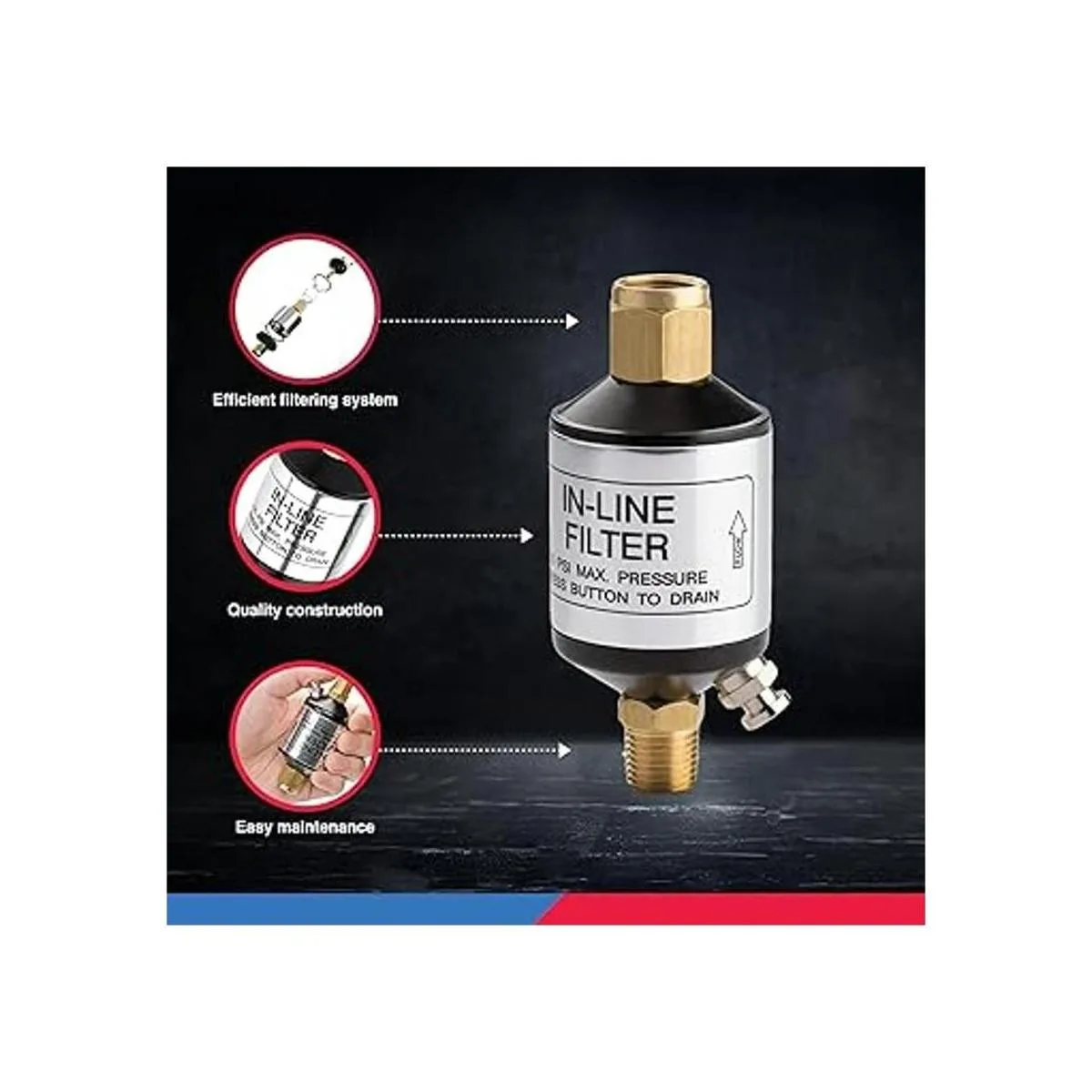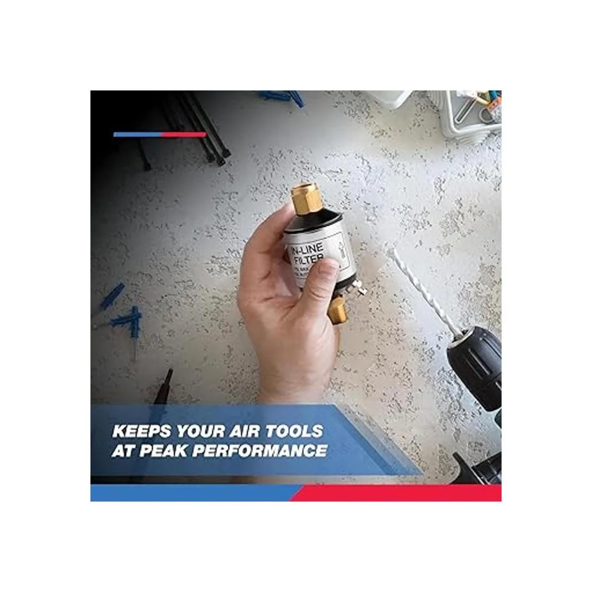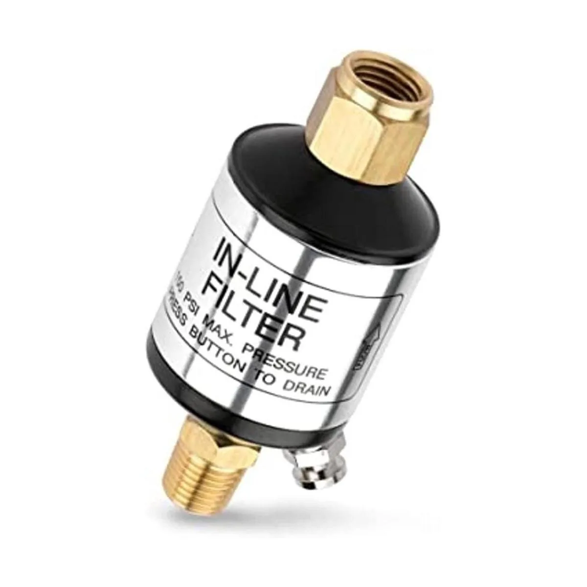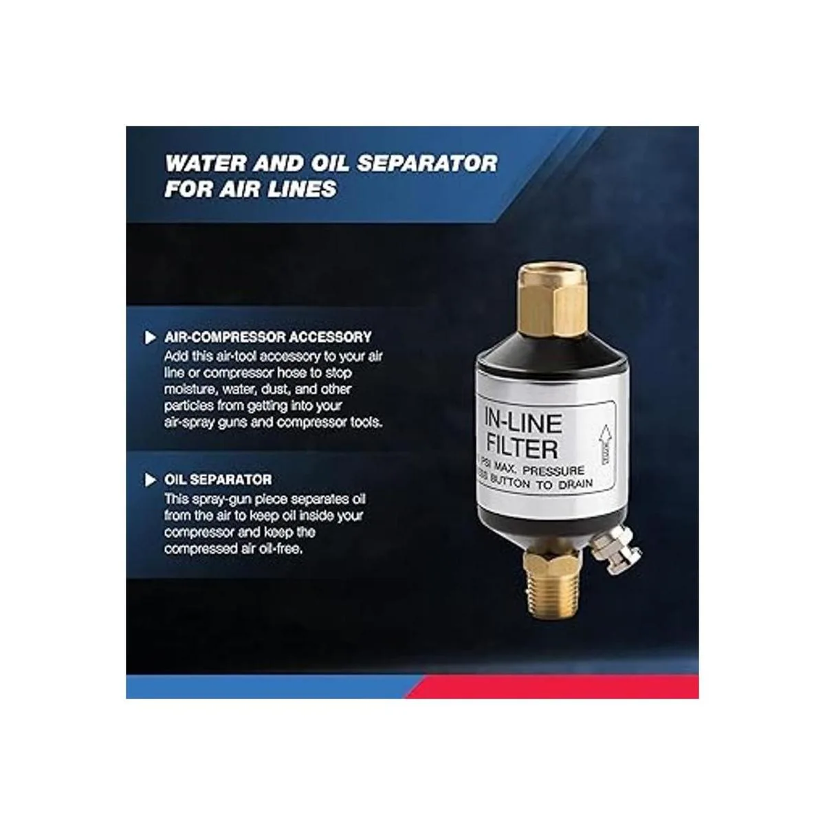 WATER SEPARATOR: An essential air tool accessory for mechanics and craftsmen that stops moisture and particles from entering air spray guns and other air compressor tools to keep your equipment in top performing shape.