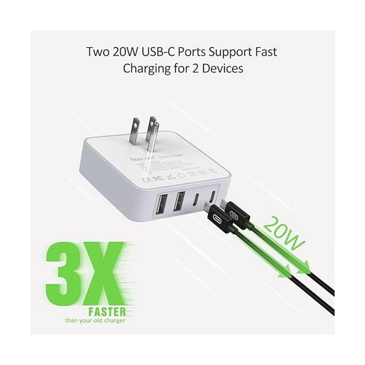 Nekmit Cargador USB C, 52 W y 4 puertos de pared rápida y plano delgado de 52 W con dos puertos PD 3.0 y 2 puertos USB para iPhone 1313 Pro13 Pro Max, iPad Pro, AirPods, Galaxy, Android y más