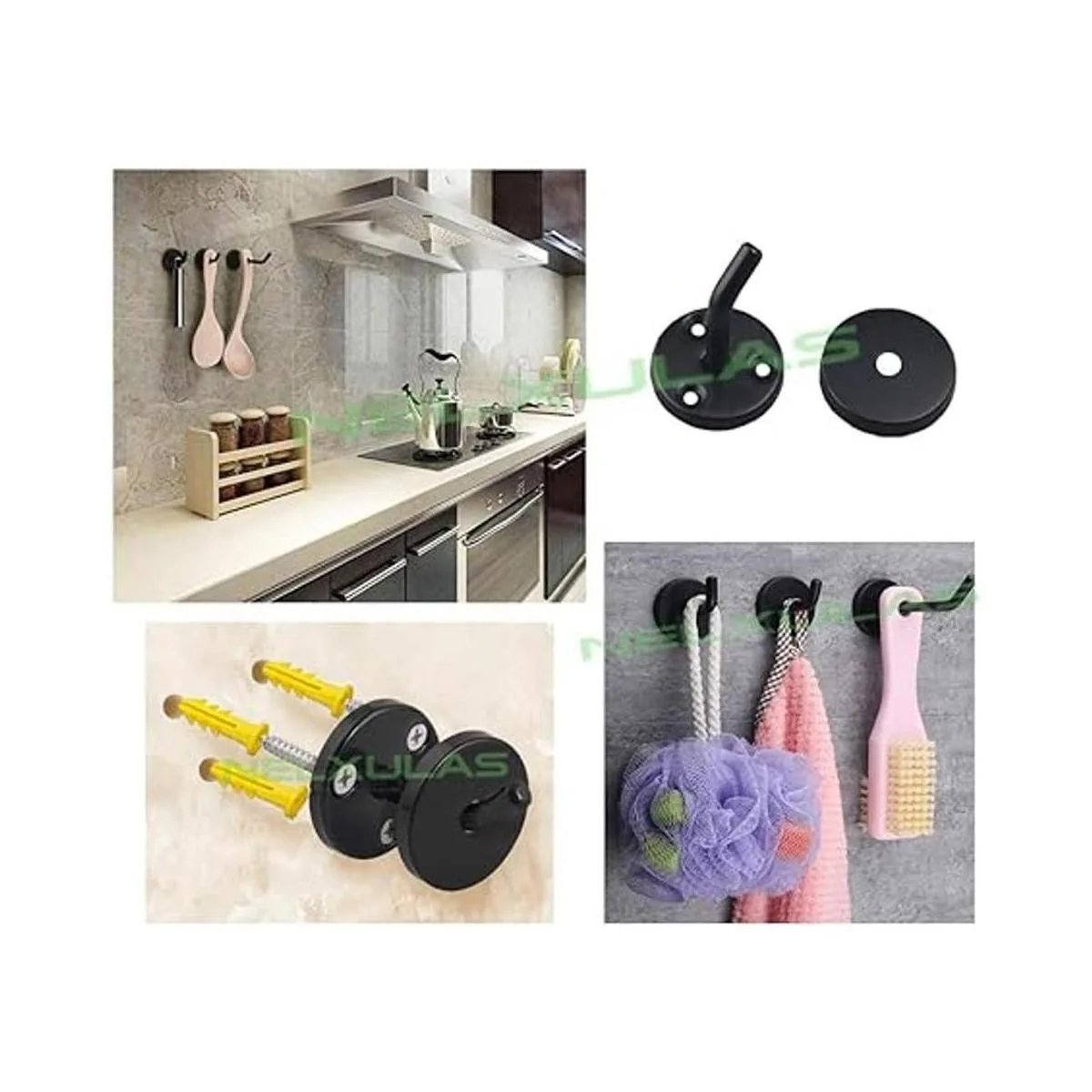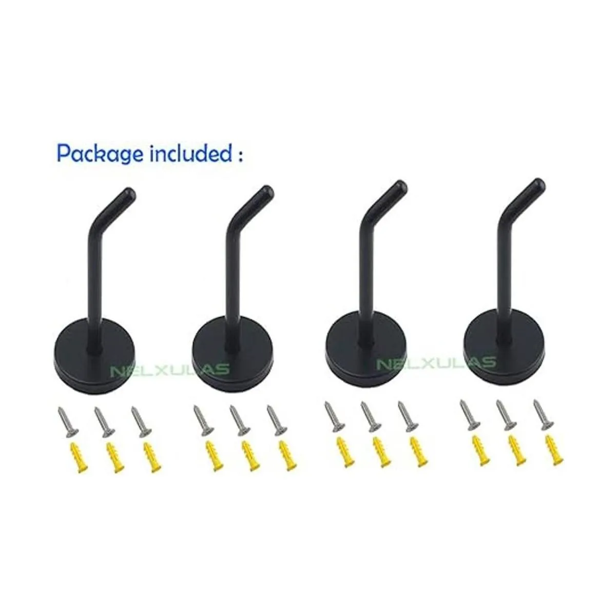 NELXULAS Gancho clásico de acero inoxidable negro resistente, gancho de montaje en pared para bata duradera, toque perfecto para tu baño, dormitorio, armarios, cocina 8 pulgadas, 4 piezas