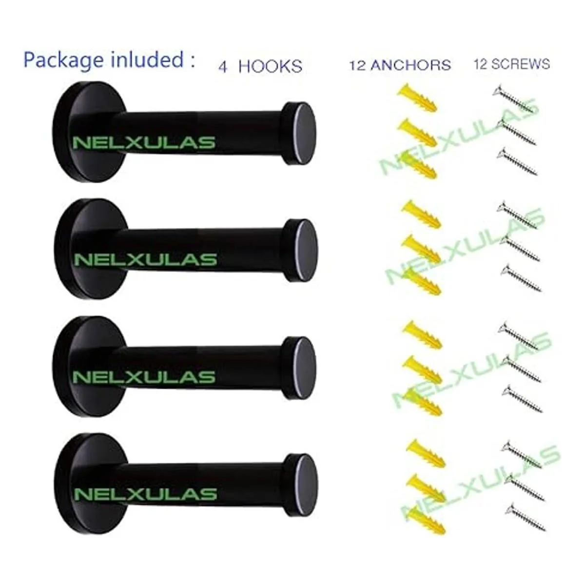 NELXULAS Ganchos clásicos de acero inoxidable de alta resistencia para montaje en pared, ganchos para toallas de baño, ganchos para abrigos, ganchos para bolsos, paquete de 4 unidades 4 pulgadas