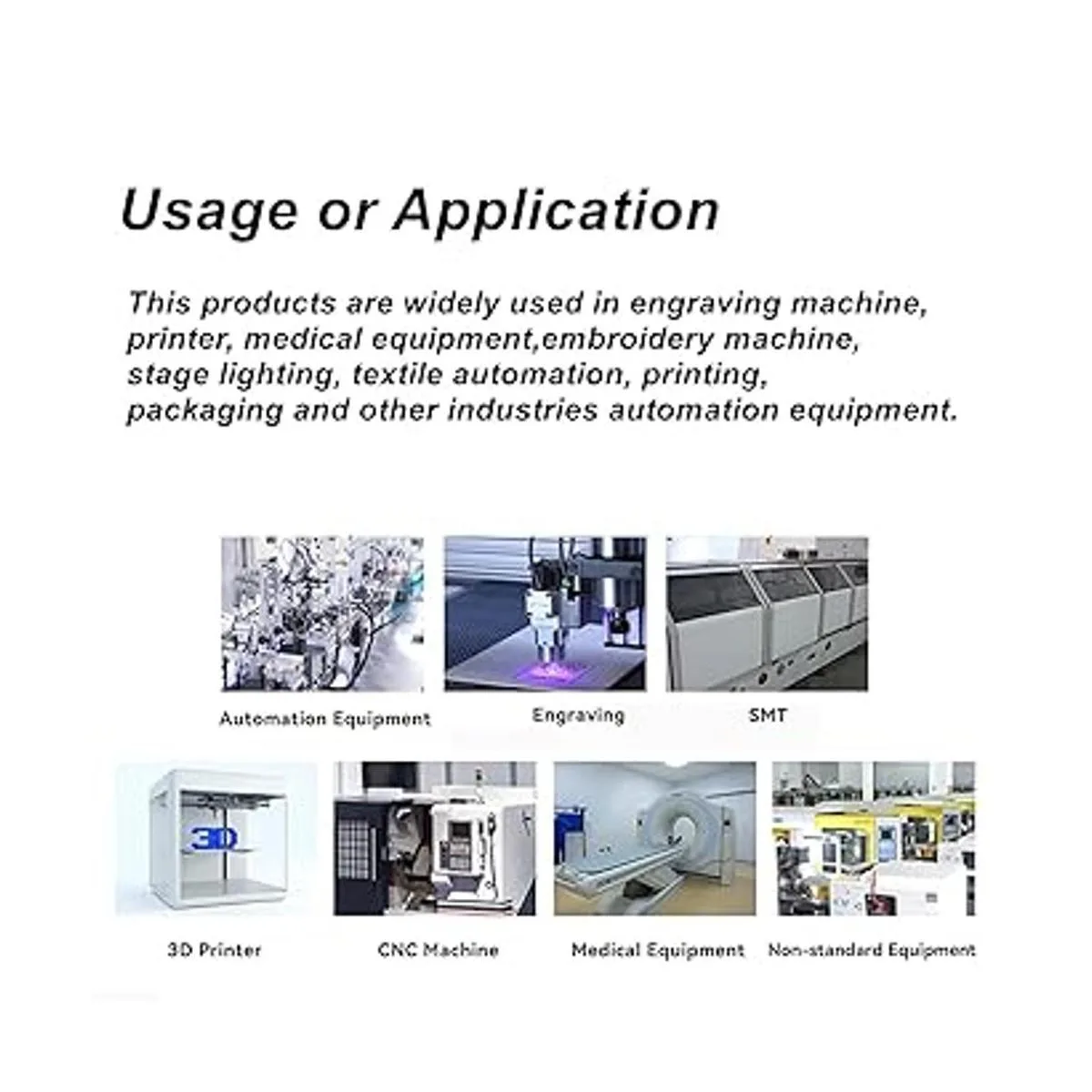 Aplicaciones: equipo semiconductor, fresadora, máquina grabadora, enrutadores CNC, impresoras 3D, equipos médicos, equipos industriales, máquinas láser, dispositivos de automatización.