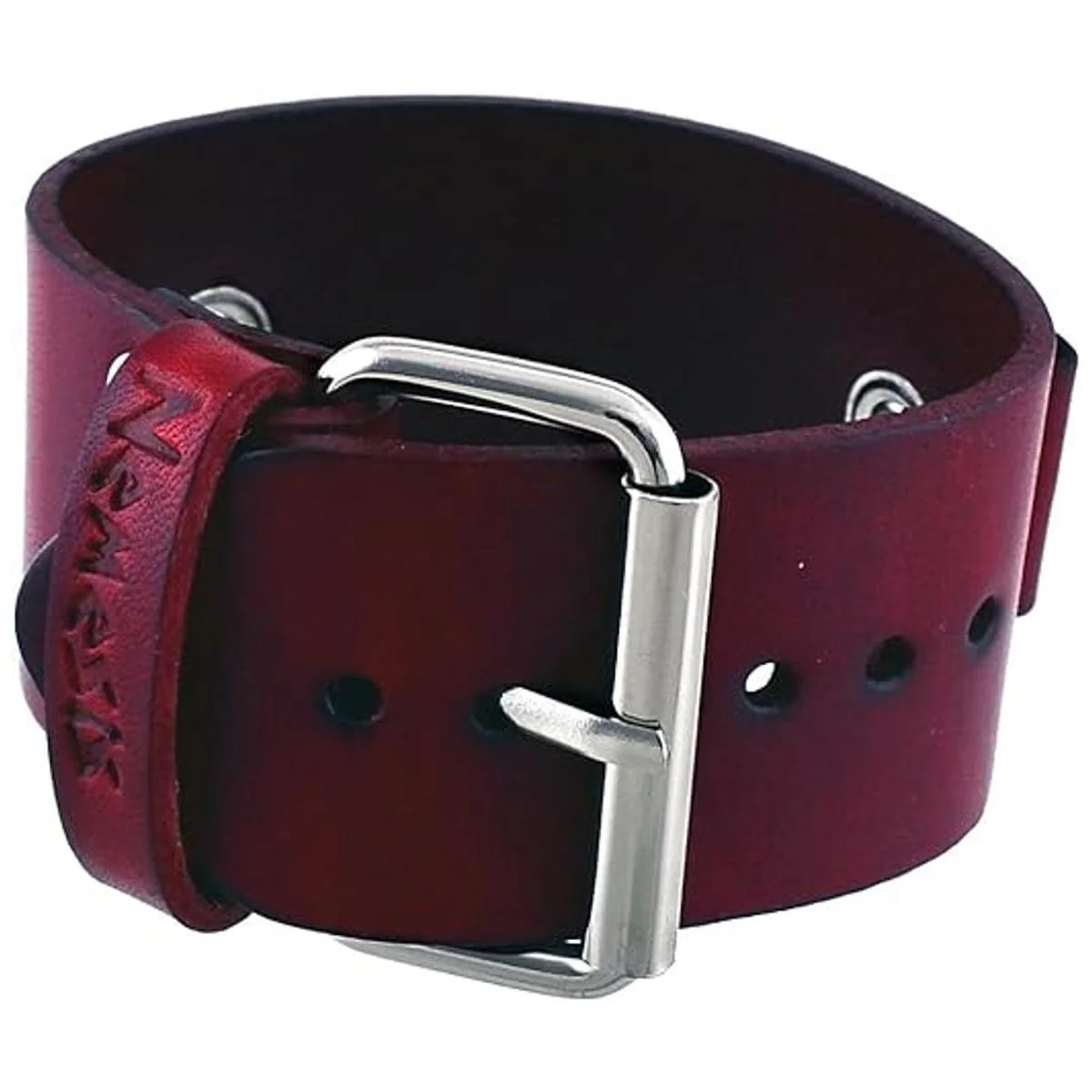 Nemesis GBR Sangre Rojo Wide piel Muñequera Reloj Band