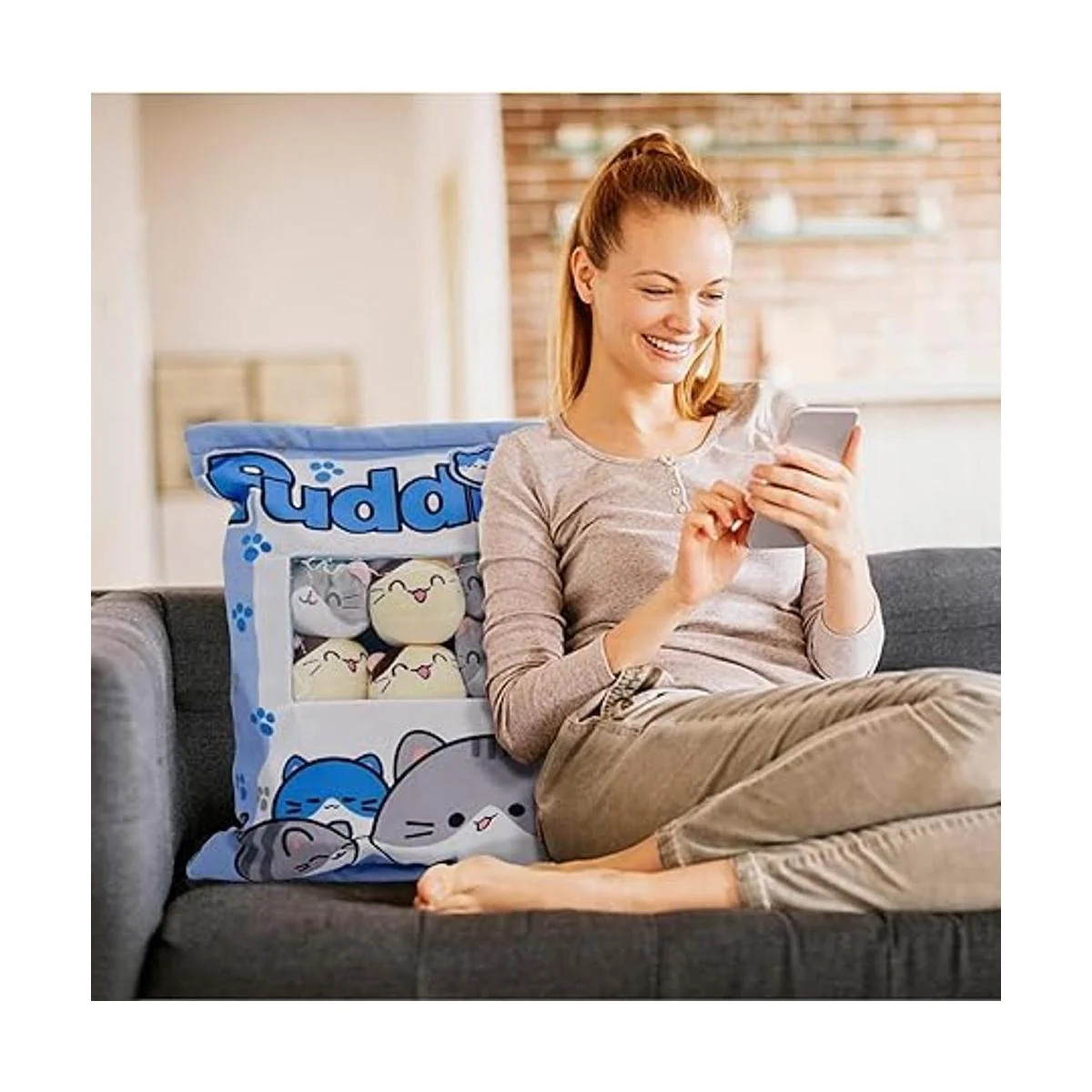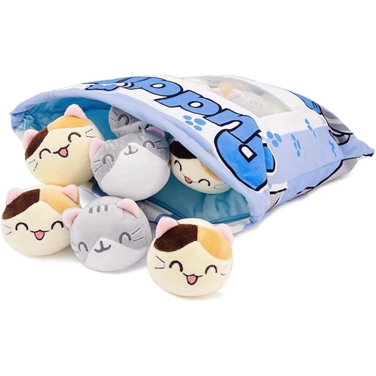 Una bolsa de juguetes de gatos de peluche suave, muy linda Hay 8 gatitos de felpa en cada bonita almohada, son llamativos para tus hijos y puedes sacarlos como decoración del hogar.