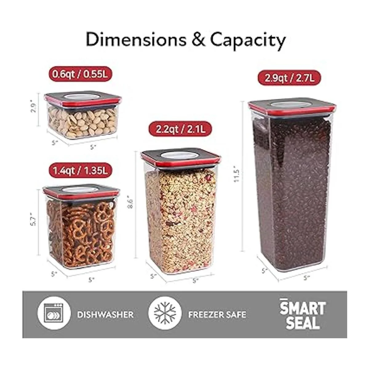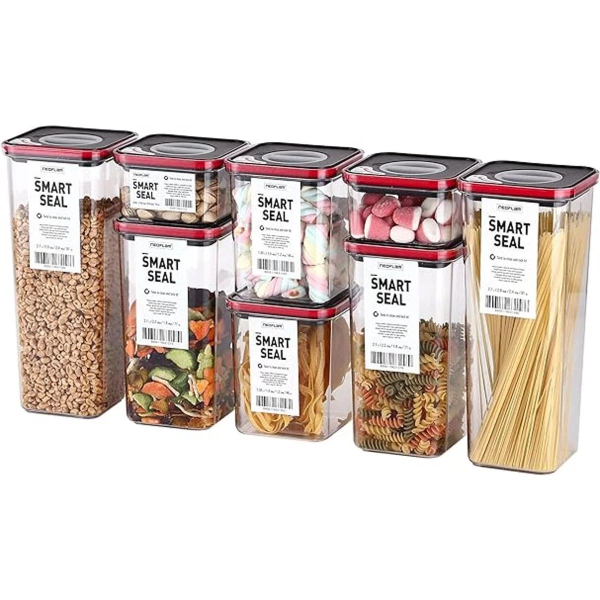 Neoflam Smart Seal Recipiente hermético para despensa de cocina de 8 piezas, recipiente de plástico transparente y tapas simples de torsión, 100 a prueba de fugas, apto para lavavajillas, sin BPA, cereales, juego de almacenamiento de alimentos secos, color blanco