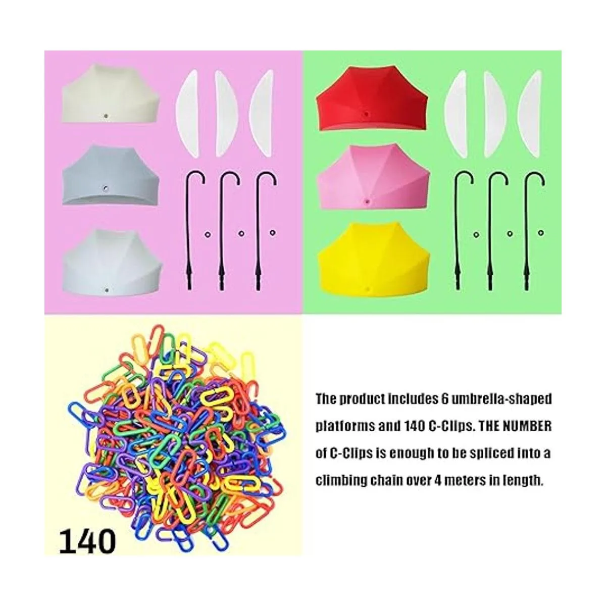 El producto incluye 6 plataformas en forma de paraguas y 140 clips en C. El número de clips C es suficiente para ser empalmado en una cadena de escalada de más de 13.1 ft de longitud.