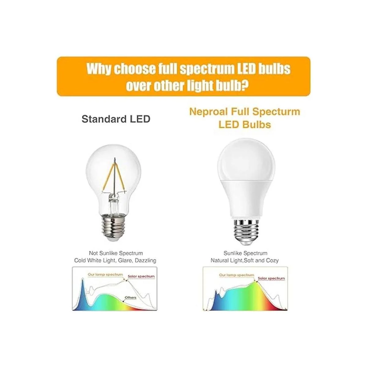 Bombilla de espectro completo: bombillas de espectro completo de Neporal. Simula la luz solar natural, mejora tu bienestar y elimina la irritabilidad. Proporciona luz solar natural para ti. Lo que mantendrá alejados el letargo de la somnolencia y la agitación
