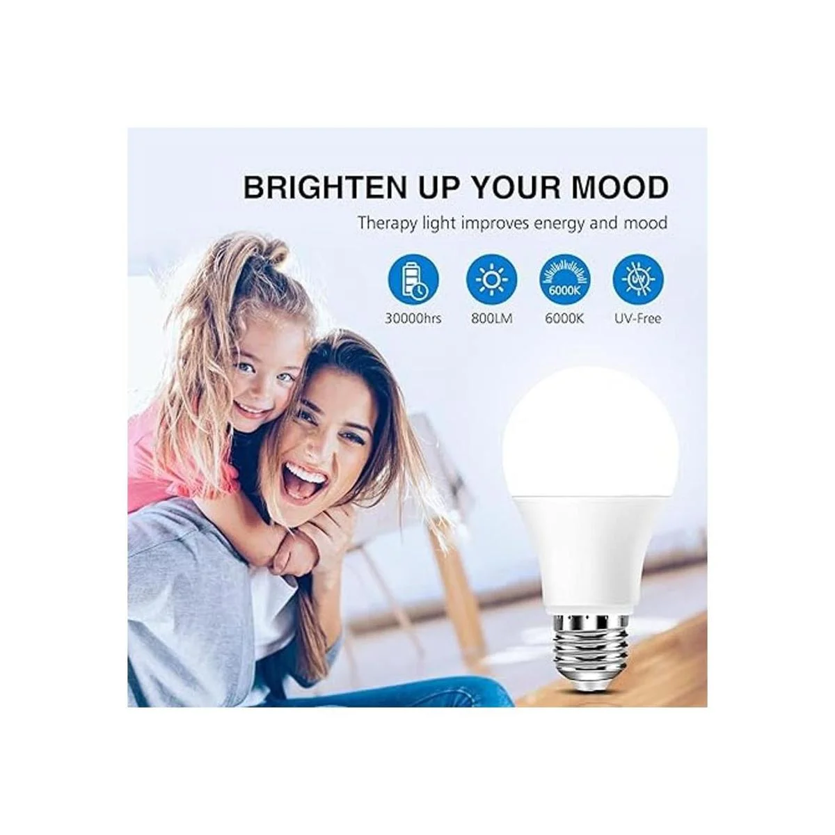 Bombilla de luz solar Bombilla Neporal de espectro completo con chips LED integrados sin rayos UV para imitar todo el espectro de luz que se encuentra en la luz del día, trae luz de 6000 K para mantener alejados el letargo de somnolencia y la agitación. Lo que te ayudará a mantenerte enérgico y concentrado. Puede proporcionar una iluminación de 800 lm de súper brillo. Te permite disfrutar de una luz brillante y suave, lo que permite que tu trabajo, estudio, lectura y otras actividades sean más convenientes.