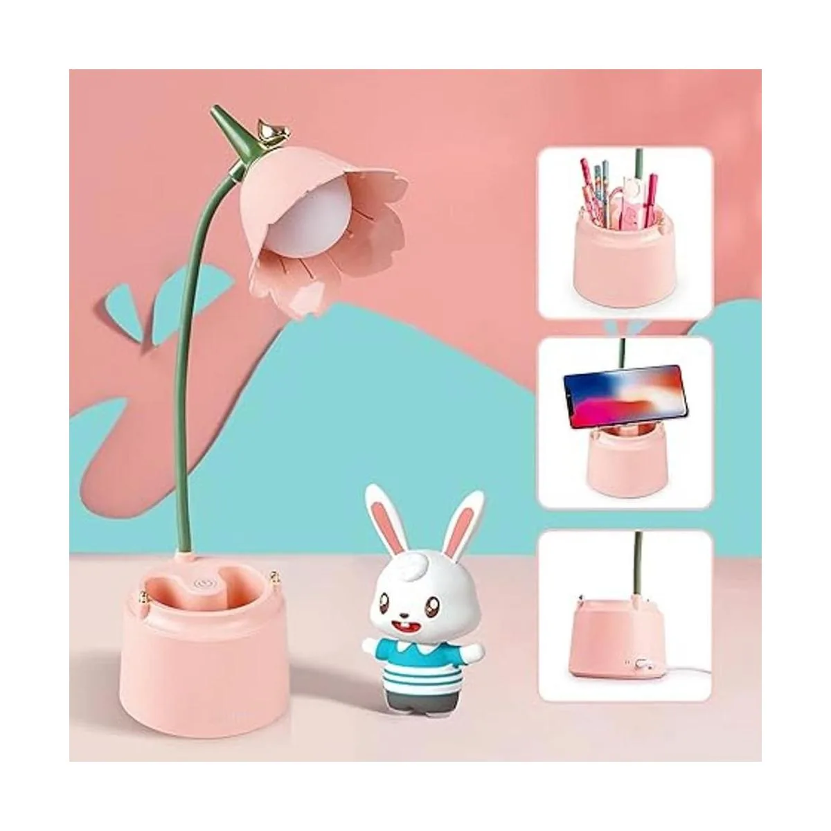 Pequeña lámpara LED de escritorio Esta bonita lámpara mide solo 4 x 14 pulgadas de tamaño, se adapta perfectamente a cualquier espacio pequeño. Con organizador y una base de lámpara utilizada como soporte para teléfono celular, es un accesorio kawaii y ahorra espacio