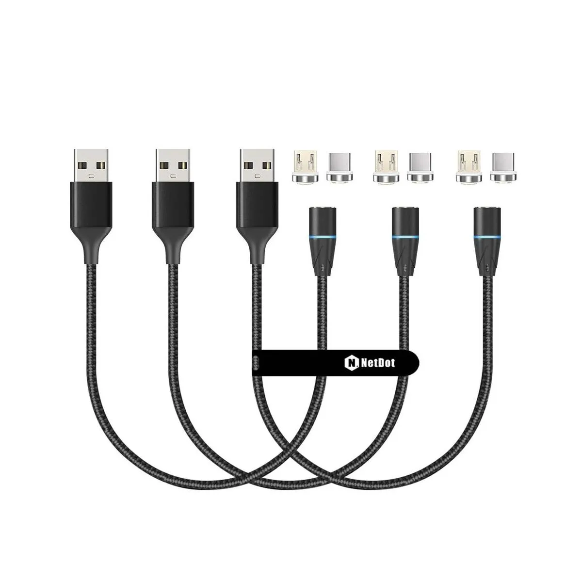 NetDot Gen12 Micro USB y USBC 1 pie, paquete de 3 unidades Cable magnético de transferencia de datos de carga rápida compatible con dispositivos Android
