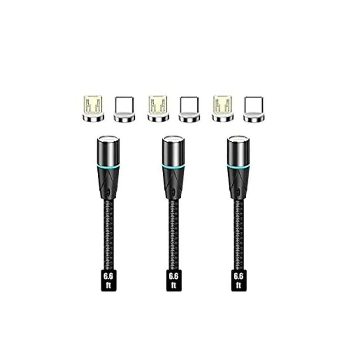 NetDot Gen12 Micro USB y USBC 6.6 pies, 3 unidades negras Cable magnético de transferencia de datos de carga rápida compatible con dispositivo Android
