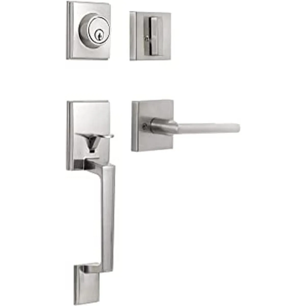 NeuType Juego de manijas de puerta delantera, juego de cerradura de puerta de entrada, níquel satinado, juego de manijas de entrada resistentes con cerradura, con cerrojo de cilindro único y mango de palanca, compatible con puertas diestros y zurdos