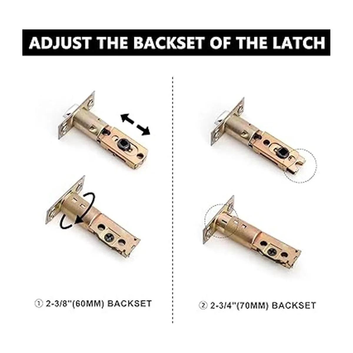 Se adapta a la mayoría de puertas estándar: los juegos de manijas de puerta se adaptan a la mayoría de puertas de tamaño estándar que van desde 13/8 pulgadas a 13/4 pulgadas de grosor. Además, el tirador de puerta cuenta con pestillo ajustable de 23/8 pulgadas o 23/4 pulgadas para adaptarse a todas las preparaciones de puertas estándar, así como compatibilidad con puertas diestros y zurdos.