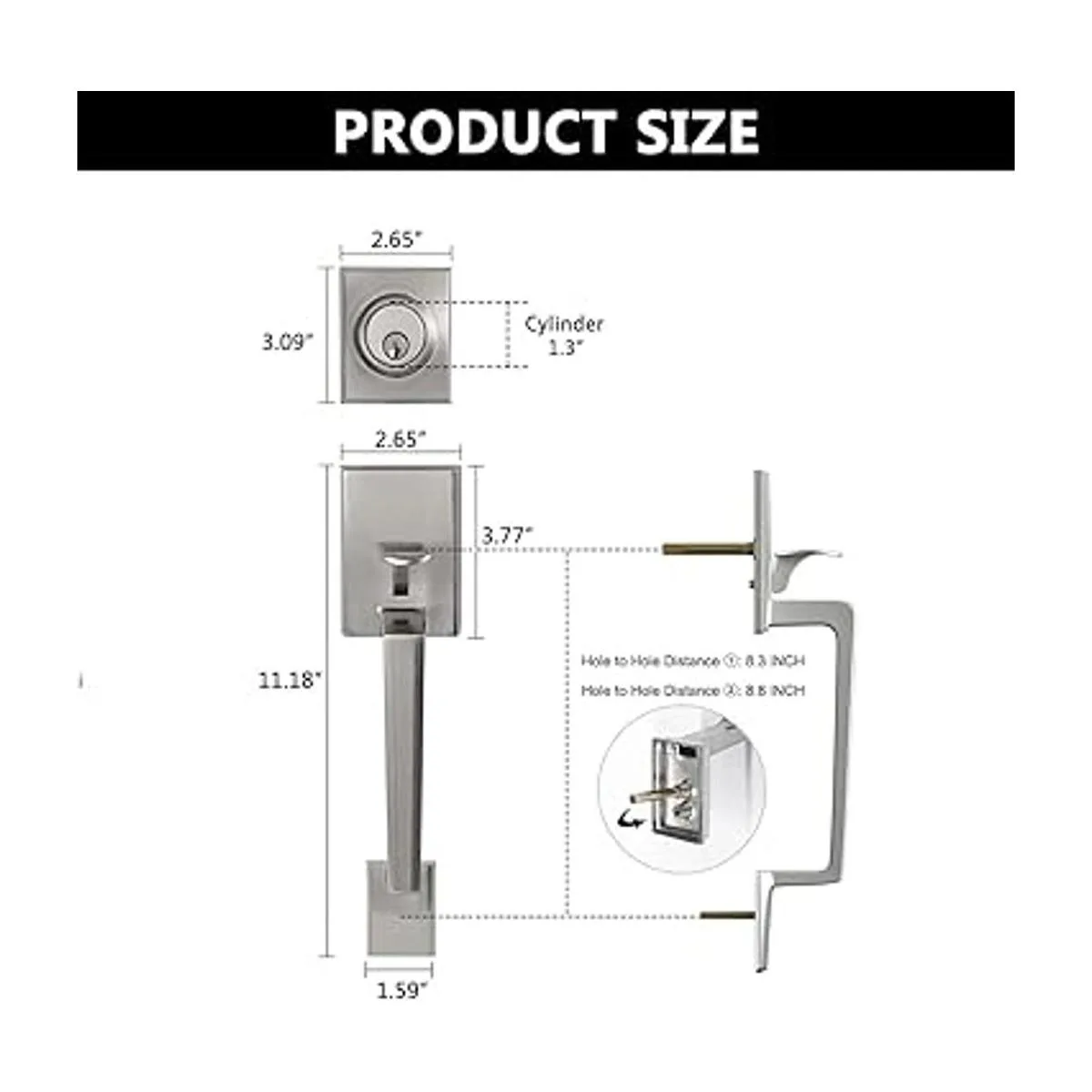 Fácil instalación: el juego de cerradura de puerta delantera es fácil de instalar para los aficionados con ajuste garantizado en puertas preperforadas estándar. Todo lo que necesitas es un destornillador. Solo recuerda que compara el tamaño del producto cuidadosamente con los agujeros preperforados en tu puerta, para evitar molestias.