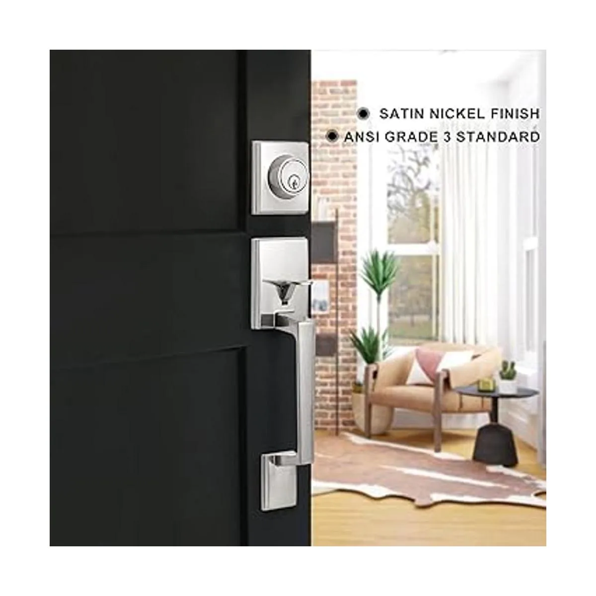 Seguridad y durabilidad: el bloqueo del mango de la puerta delantera viene con un cerrojo de un solo cilindro que se puede abrir con una llave exterior, y tiene un bloqueo seguro en el interior, lo que proporciona seguridad confiable para tu hogar. Mecanismo de bloqueo seguro combinación de material de aleación de zinc resistente que proporcionará la máxima seguridad. Gracias al estándar ANSI de grado 3, los juegos de manijas de puerta son suficientes para soportar el desgaste del uso diario.