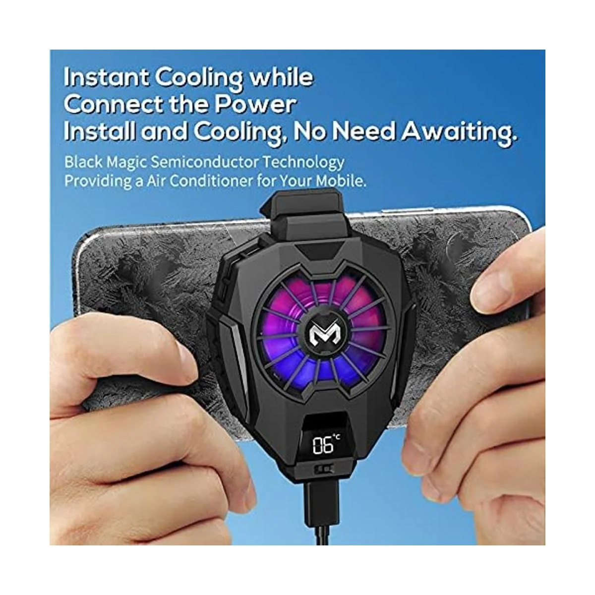 Neveika Radiador de teléfono móvil, ventilador de refrigeración con pantalla de temperatura, para video en vivo, VLOG, juego móvil, adecuado para iOSAndroid de 2.36 a 3.15 pulgadas de ancho o todo tipo de teléfonos móviles negro