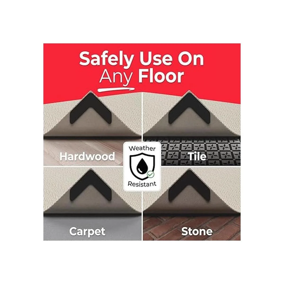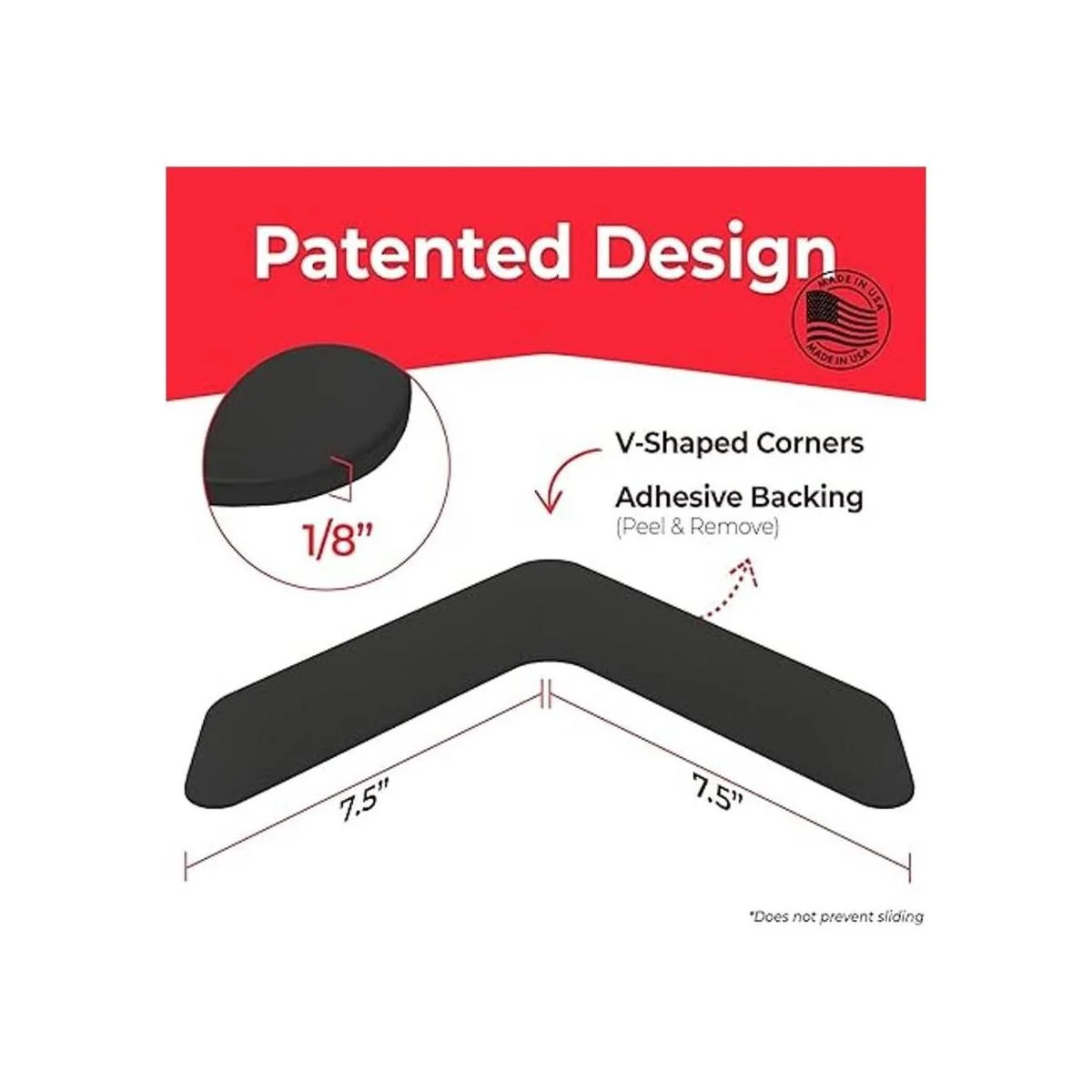 Marca registrada en : elimina de forma instantánea rizos y fabricado en Estados Unidos. se adhiere a la parte inferior de la alfombra esquina y evita que las esquinas de curling. exclusiva capa de goma protege suelos de madera diseño de pendiente de patente.