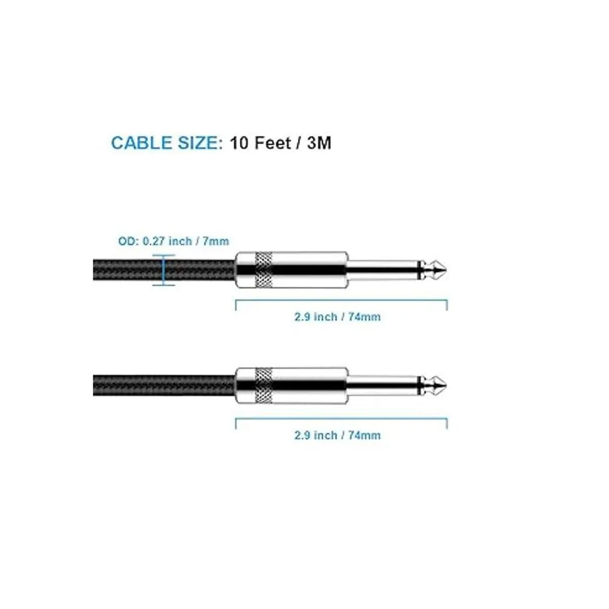 New bee Cable de guitarra de 10 pies, para instrumentos eléctrico, cable AMP para bajo, conector llano a llano de 14 para guitarra eléctrica, bajo eléctrico, mandolina eléctrica, audio profesional, negro