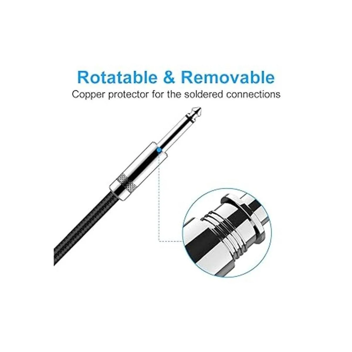 Bajo nivel de ruido y alta fidelidad El cable de guitarra con conductores centrales de cobre libre de oxígeno 22AWG proporciona una mejor transferencia de señal; el material de aislamiento de cloruro de polivinilo y el doble refuerzo de cobre trenzado de alta densidad proporcionan rechazo de ruido para un funcionamiento silencioso.
