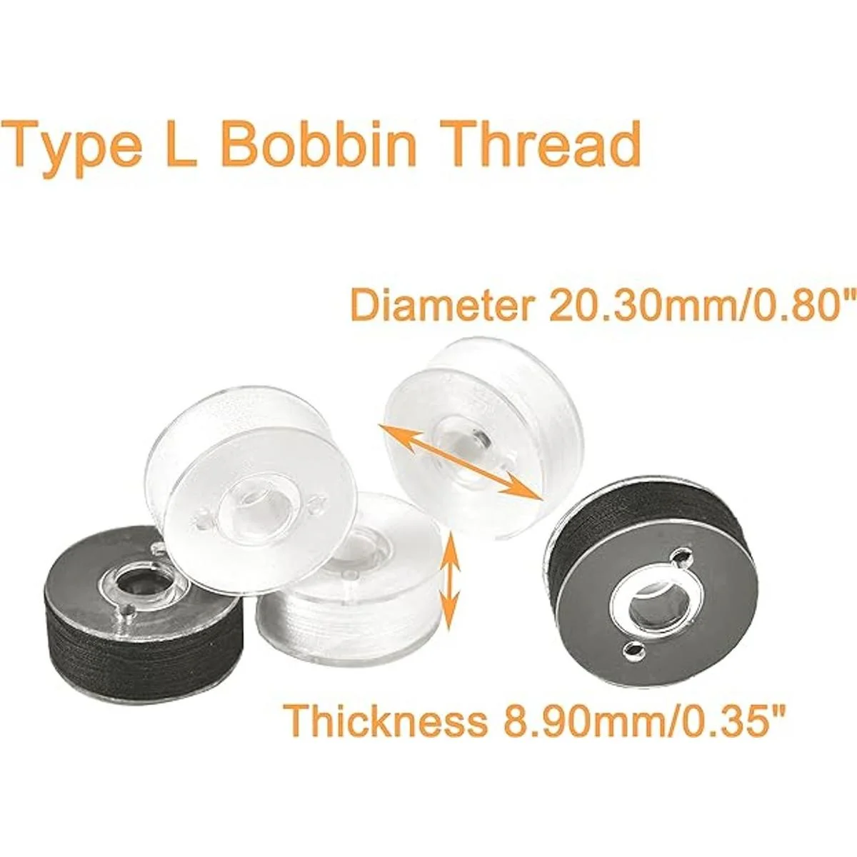 New brothread 144 piezas tipo L SA155 96 blanco 48 negro, hilo de bobina preenrollada lateral de plástico para máquinas de bordado y coser particulares, hilo de coser de poliéster de 90 pesos, algodón suave al tacto