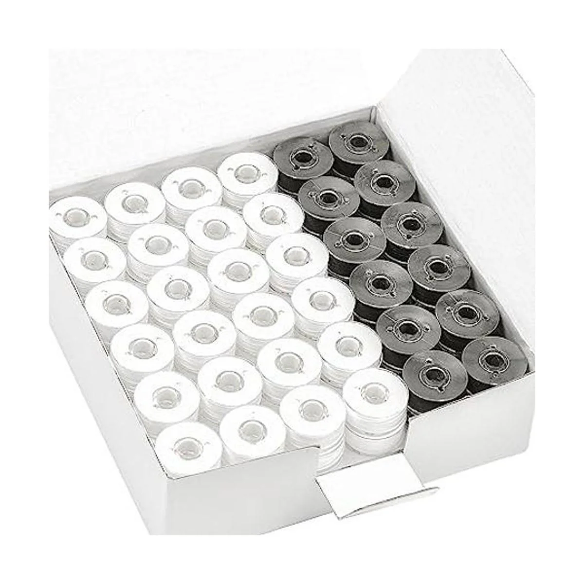96 hilos de bobina preenrollados de color blanco 48 negros satisfacen tus requisitos básicos para bordado y costura de bricolaje. Con tantos años de experiencia de venta y uso, la cantidad de uso de bobinas negras generalmente toma alrededor del 50 de las bobinas blancas, por lo que este paquete ideal seguramente será la mejor opción para bordadores profesionales y alcantarillados.
