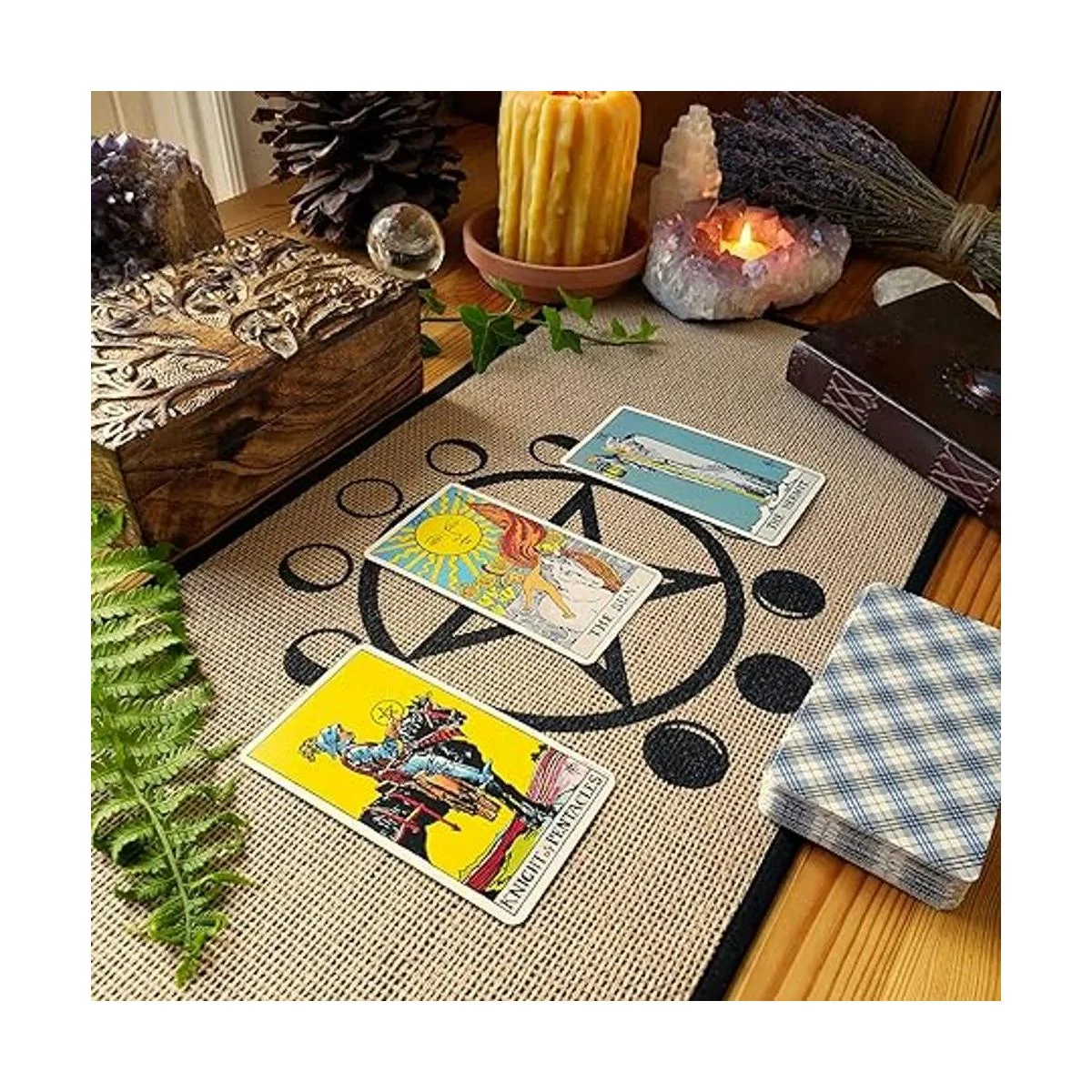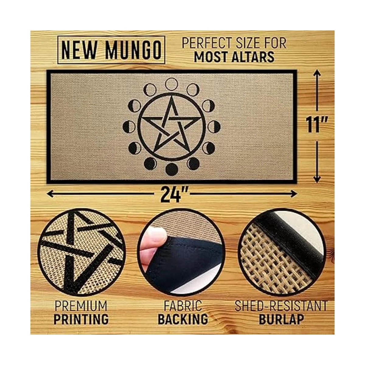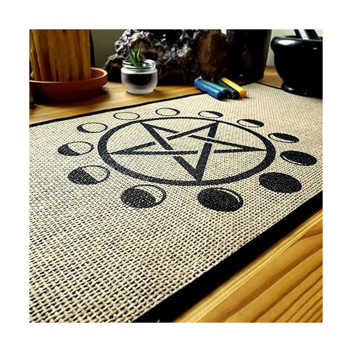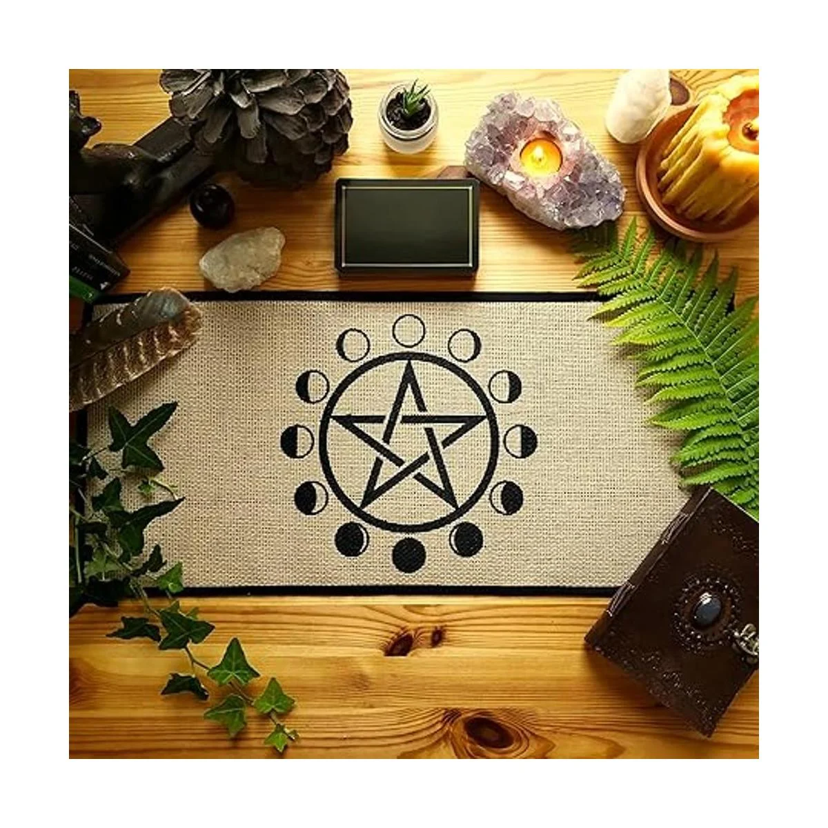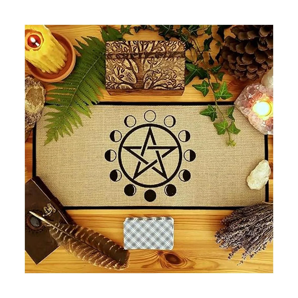 New Mungo Paño de altar Suministros de brujería, suministros y herramientas de altar wiccan, paño de tarot decoración de brujas, decoración pagana, regalos de bruja Pentagrama de fases de la luna arpillera con respaldo de tela 24.0 in x 11.0 in