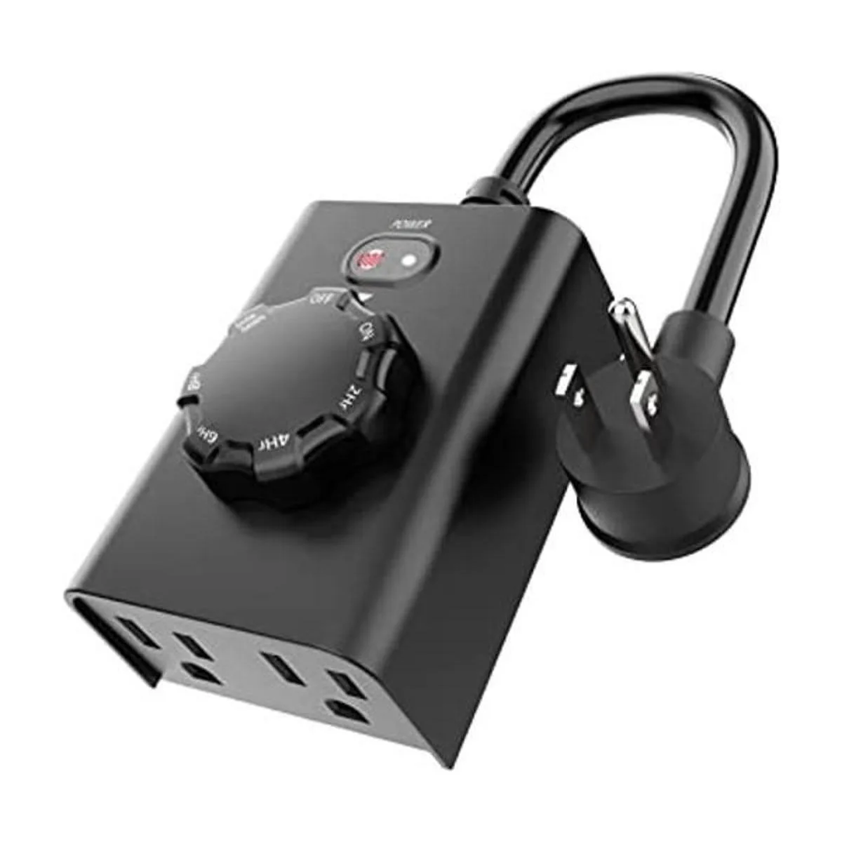 2 salidas de temporizador para exteriores Este enchufe de temporizador para exteriores tiene 2 salidas de temporizador a tierra y un cable de 6 pulgadas. 2 dispositivos se pueden controlar al mismo tiempo.