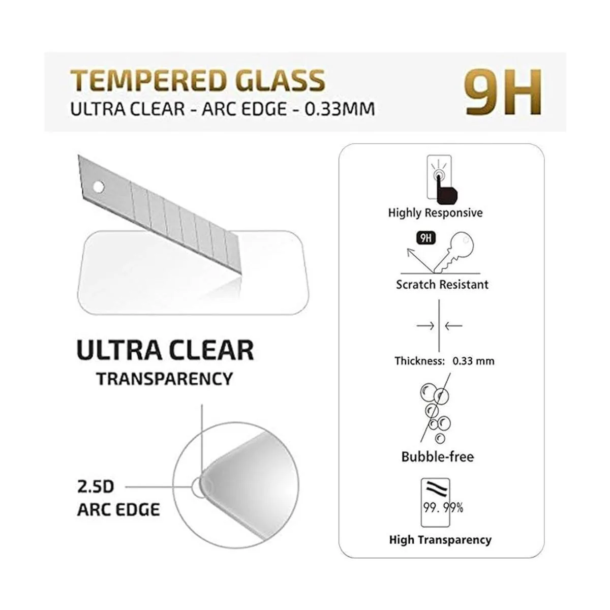 Fabricado con vidrio templado de alta calidad de 0.013 in de grosor con bordes redondeados. Dureza extremadamente alta: resiste arañazos hasta 9H