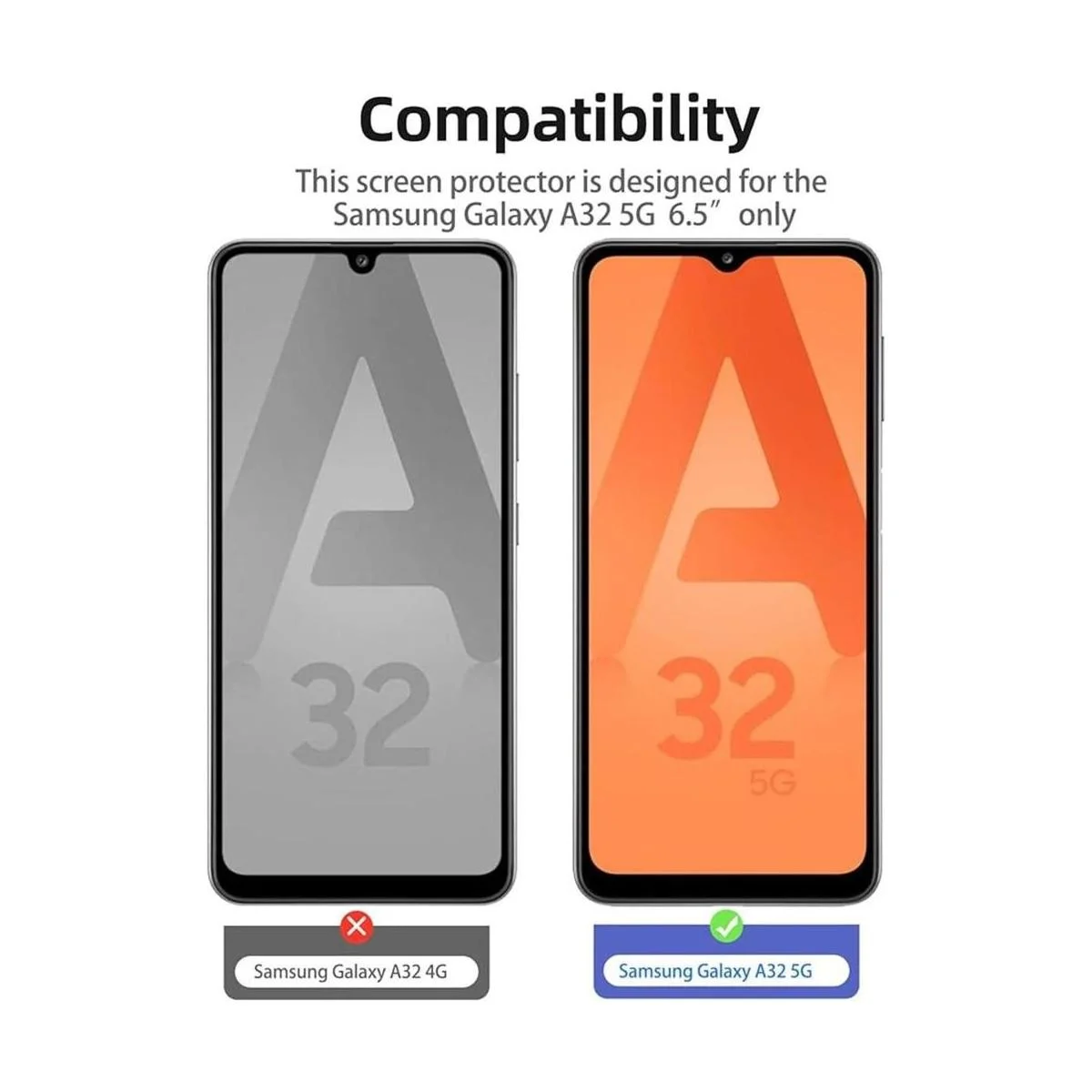 El protector de pantalla proporciona la máxima protección para la pantalla táctil Samsung Galaxy A32 5G. El espacio entre el Samsung Galaxy A32 5G y el protector de pantalla permite el espacio adecuado para la instalación de la mayoría de fundas de teléfono.