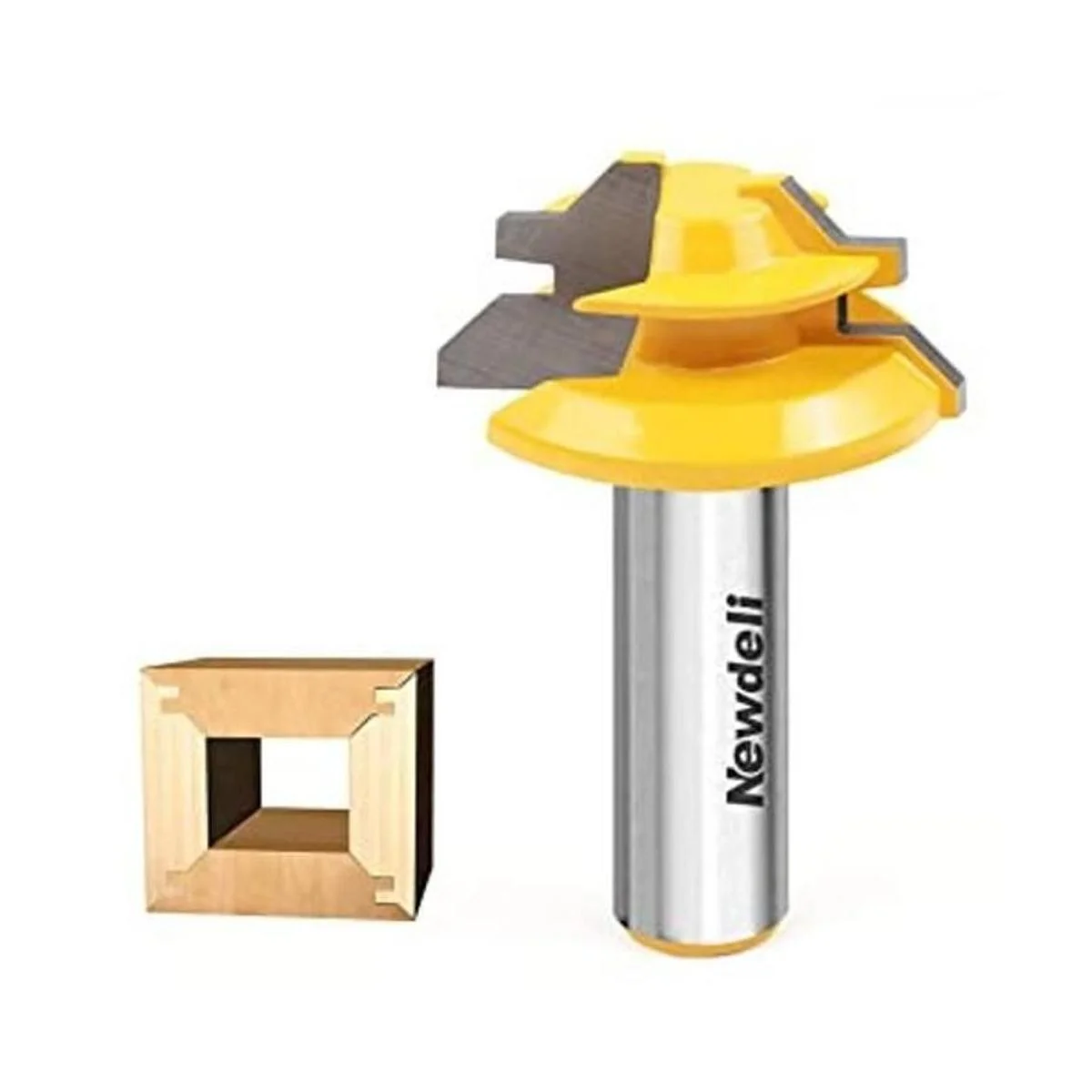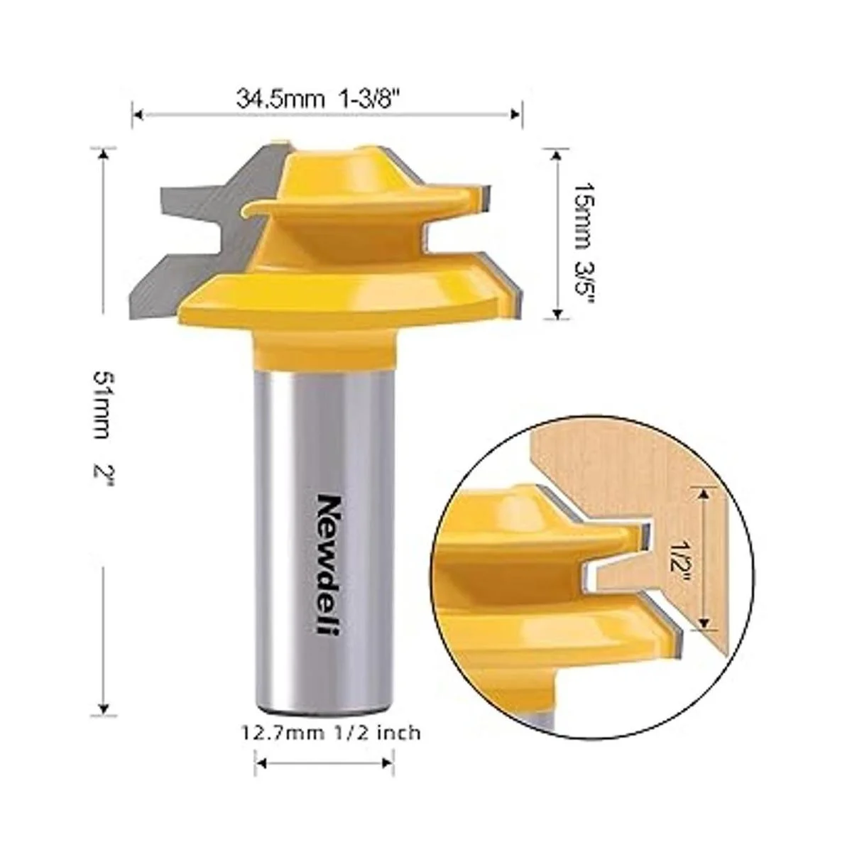 Newdeli Broca de enrutador de 45 grados, vástago de 12 de 45 grados, broca de inglete de bloqueo de 12 pulgada para carpintería de juntas de espiga de 90 grados