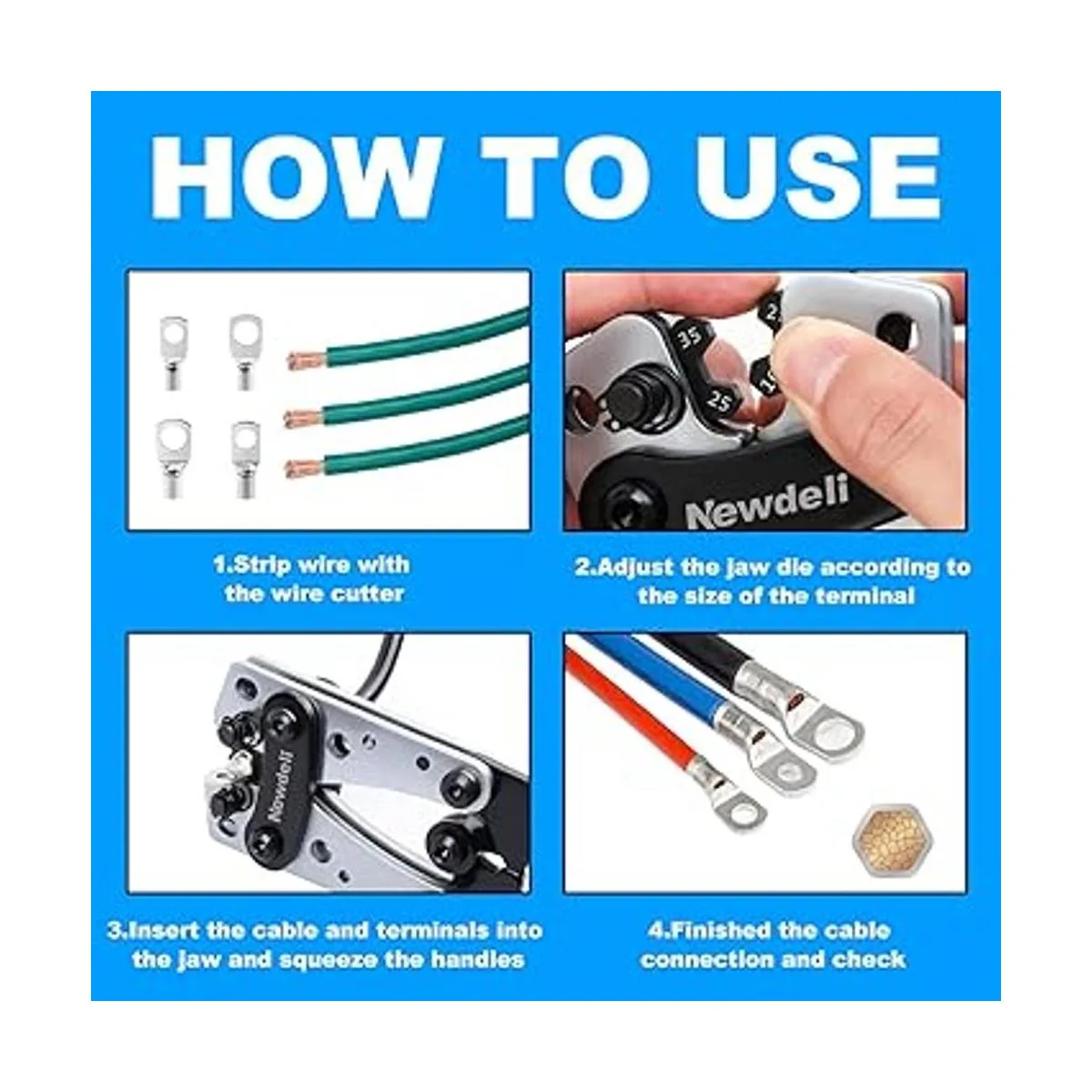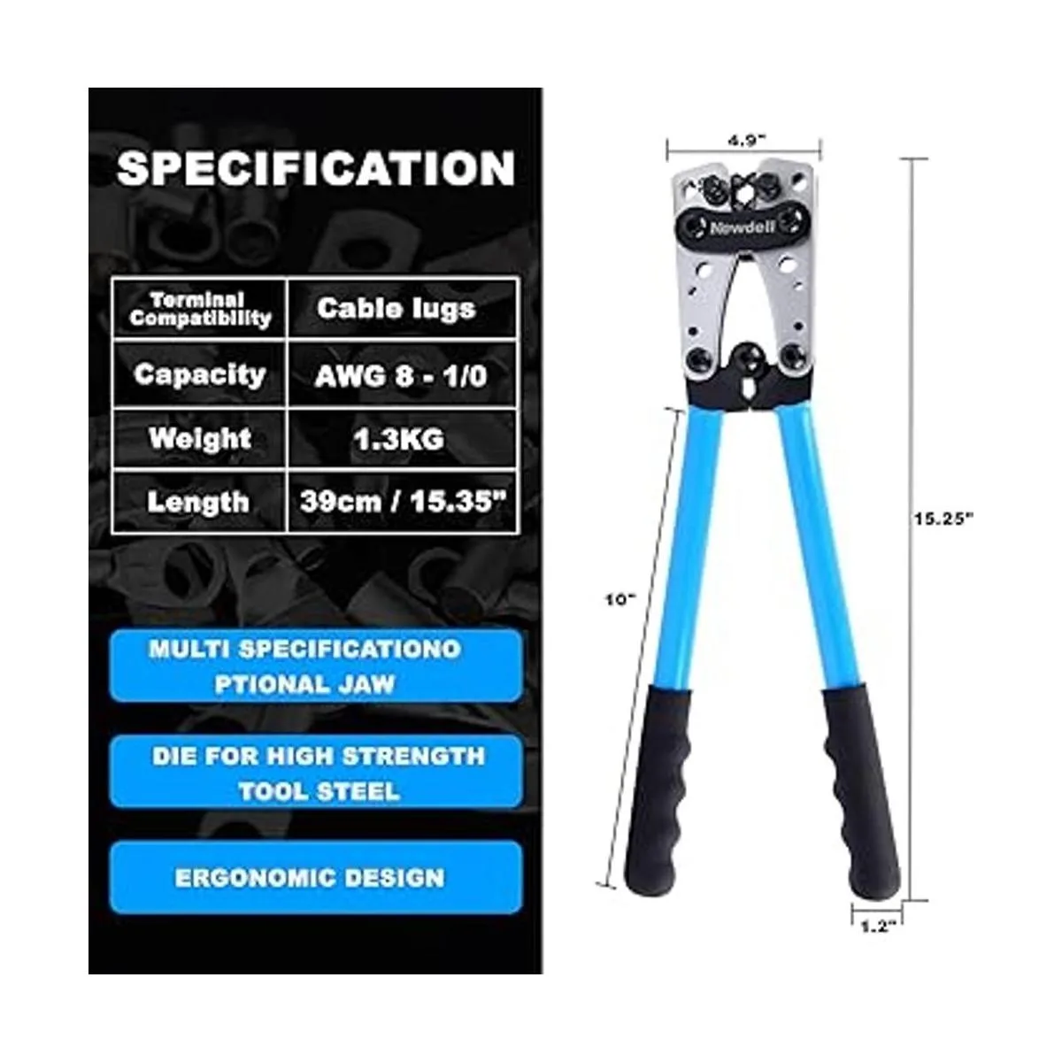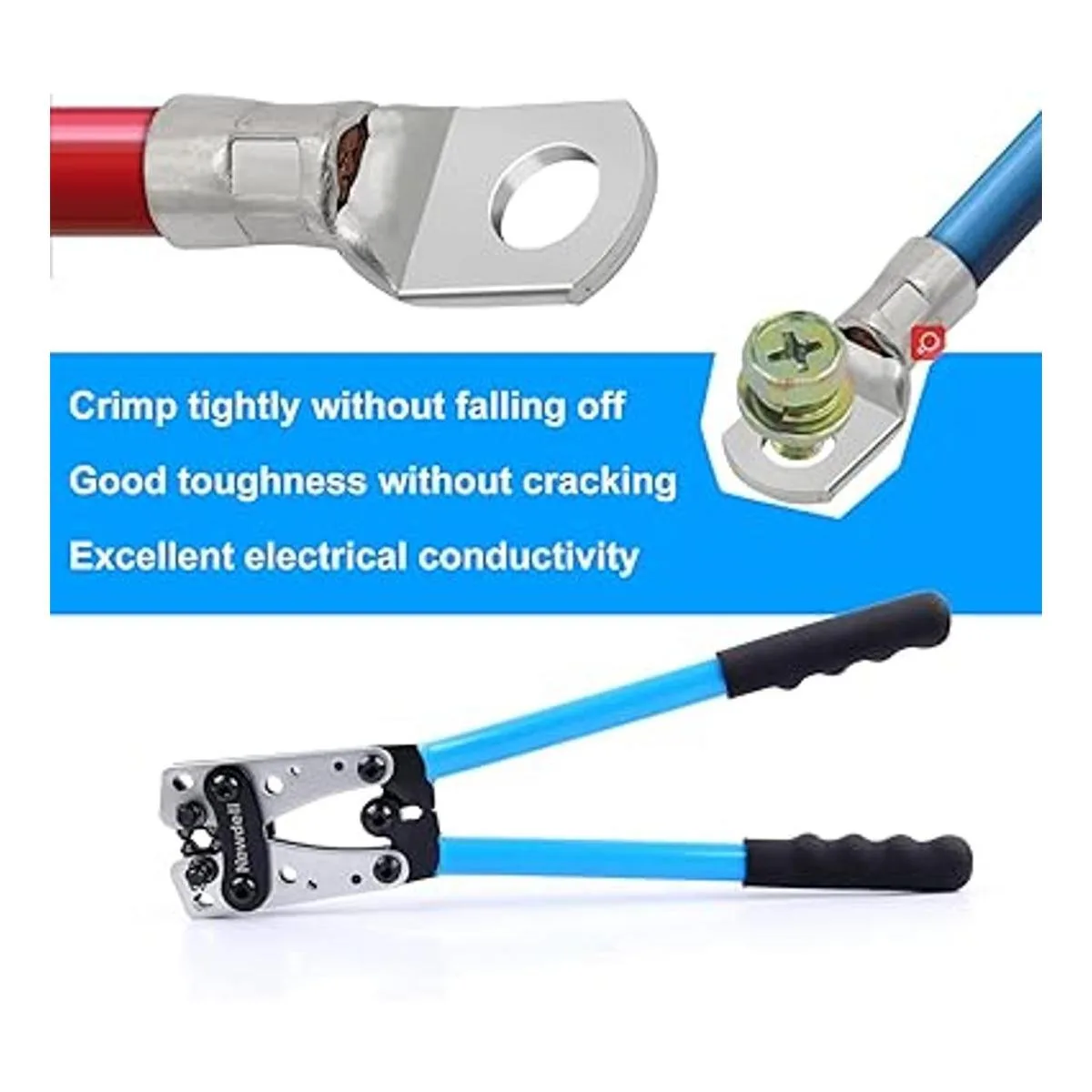 Herramienta duradera: este crimpador de cables de batería está hecho de acero al carbono de alta calidad, duradero y resistente de usar, adecuado para trabajos domésticos y eléctricos.