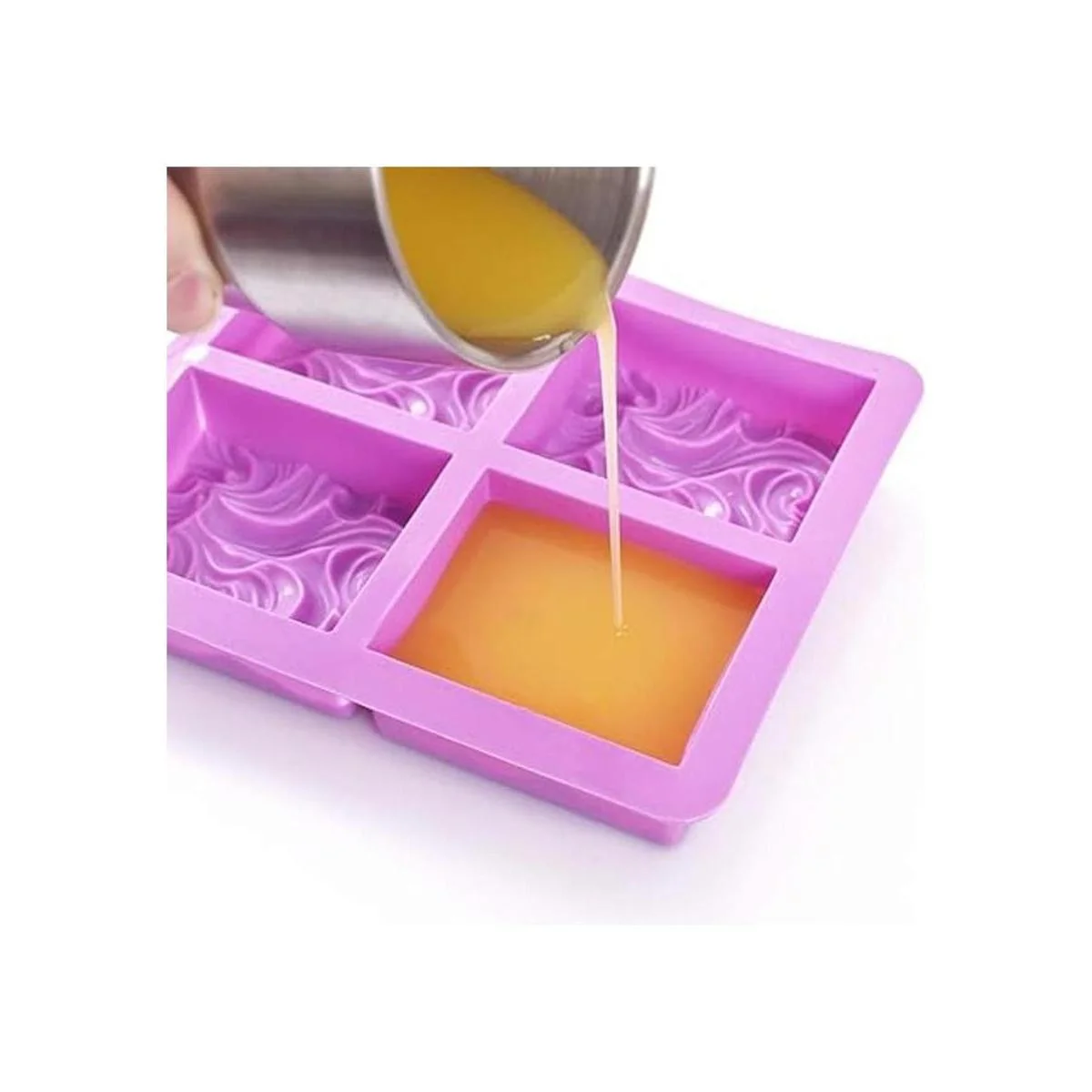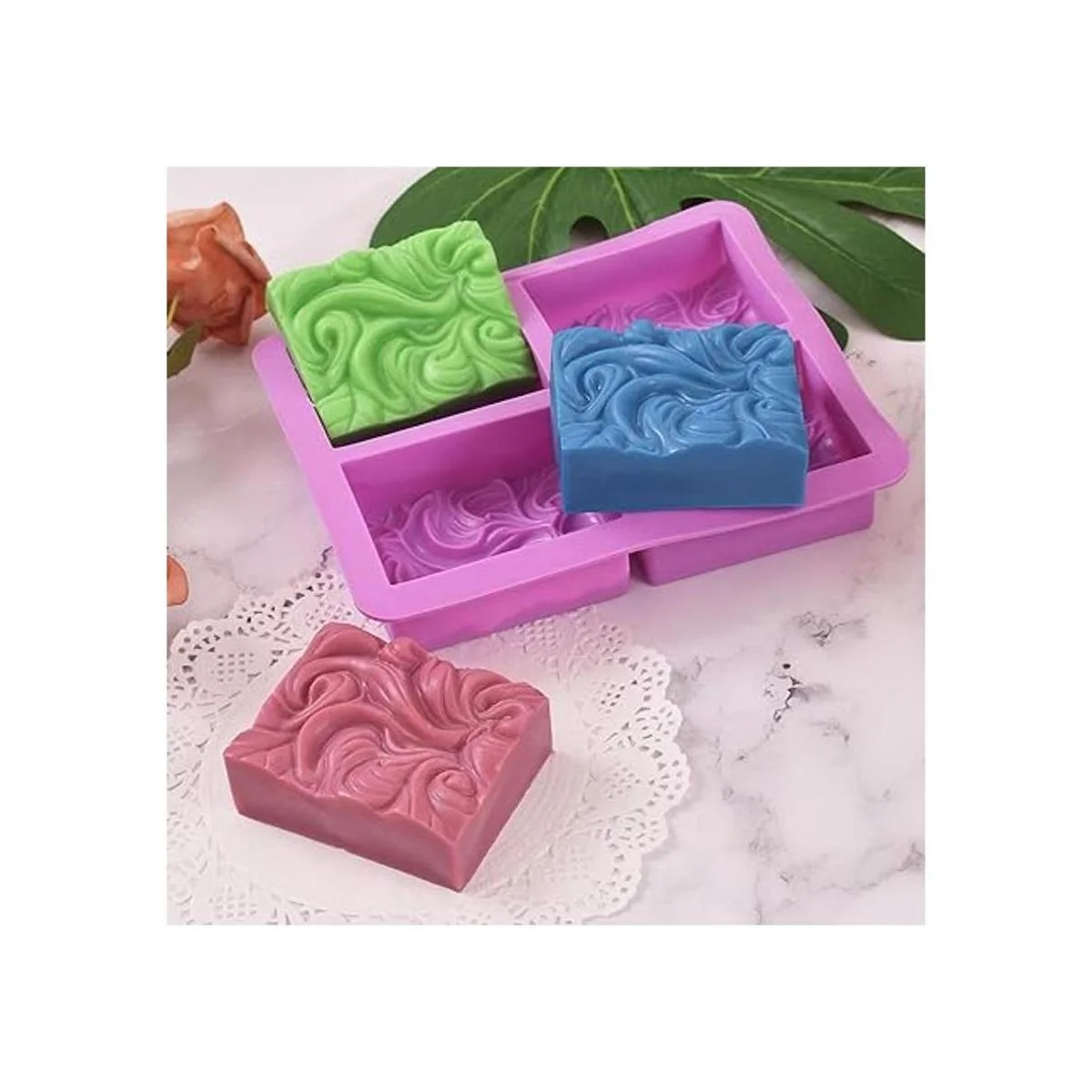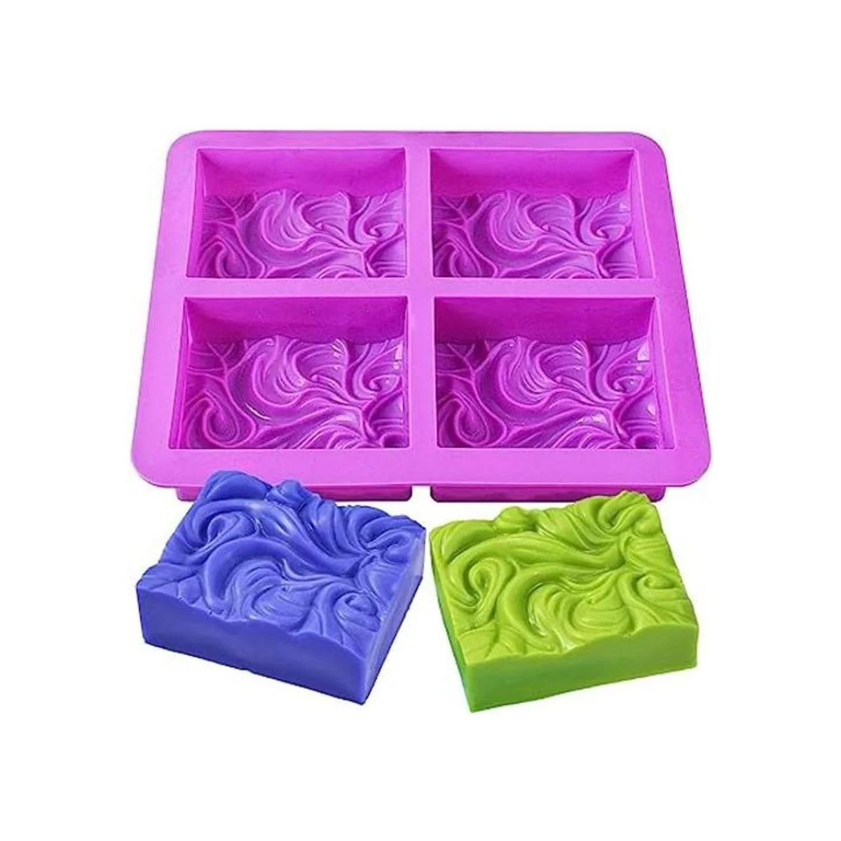Disfruta de la fabricación de jabón: el elegante patrón de ondas te ayuda a disfrutar de la fabricación de jabón; hay cuatro cavidades en un molde, puedes hacer cuatro jabones una vez. Tamaño del molde: 6.7 x 5.6 x 1.3 in; un tamaño de una sola cavidad es de 2.8 x 2.0 x 1.2 in