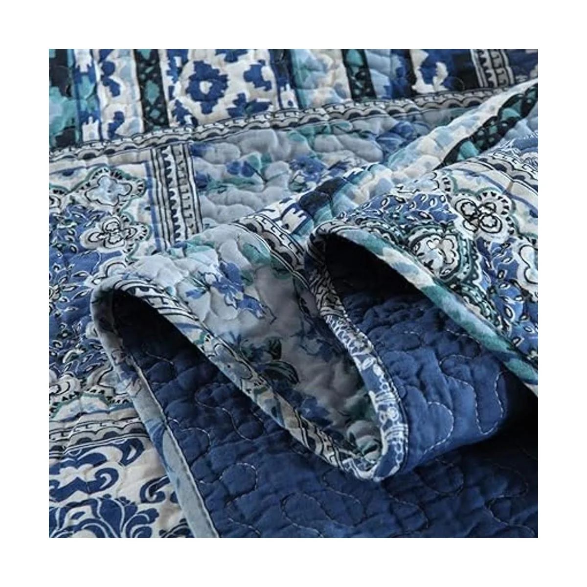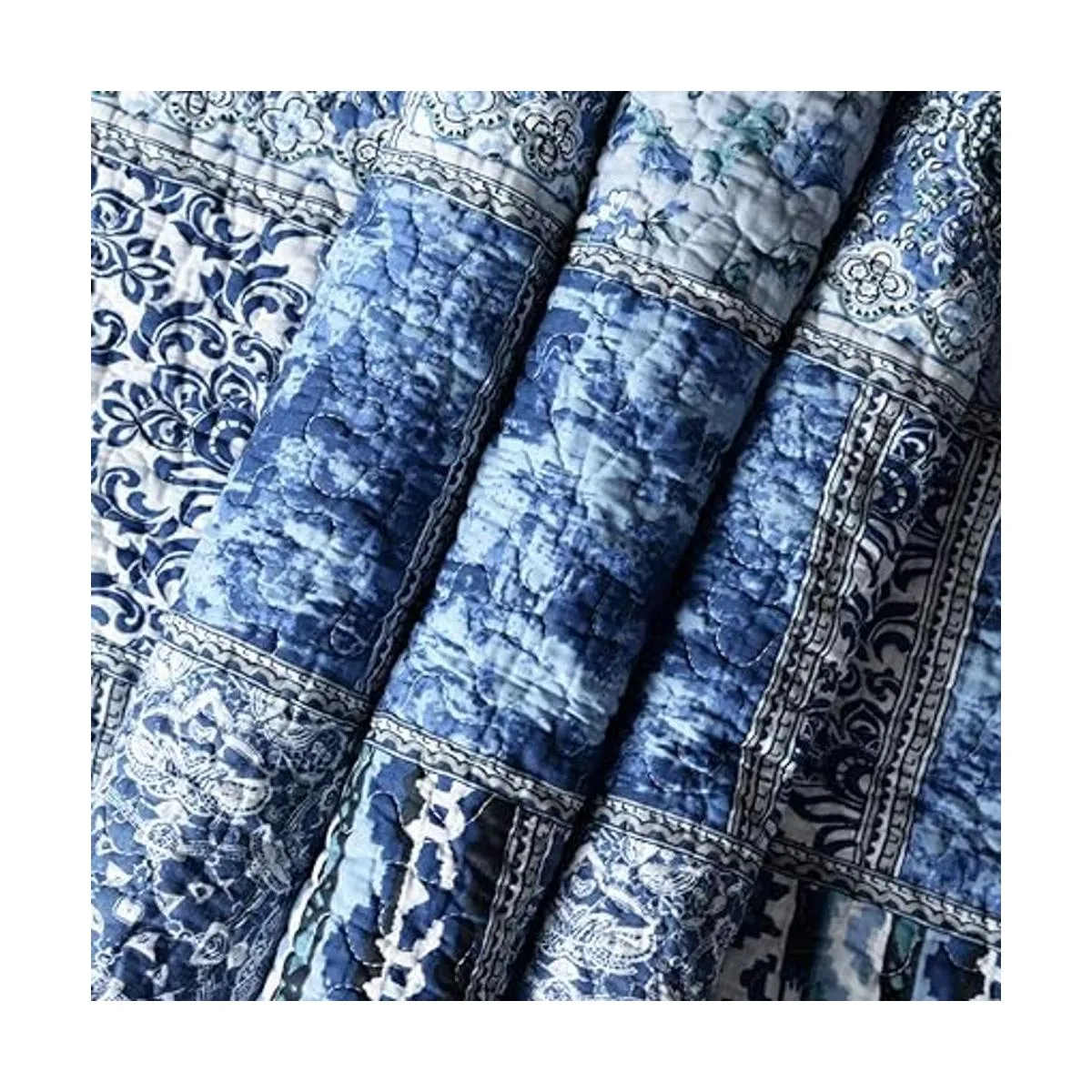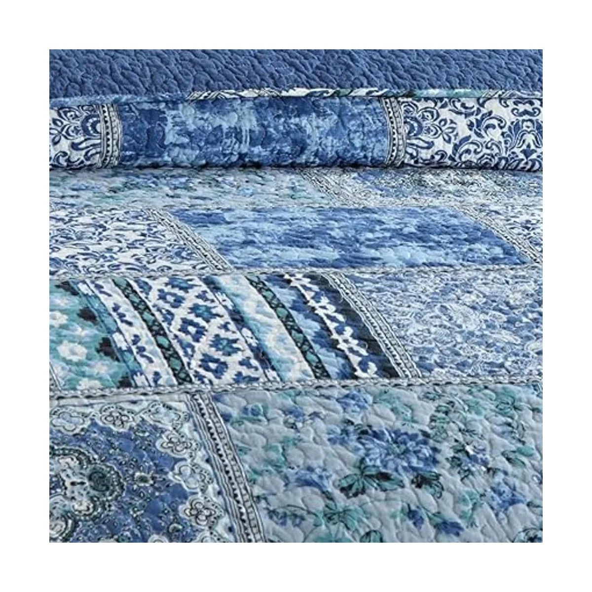 NEWLAKE Juego de colchas de algodón, juego de cubiertas de retazos, reversible, patrón azul clásico bohemio