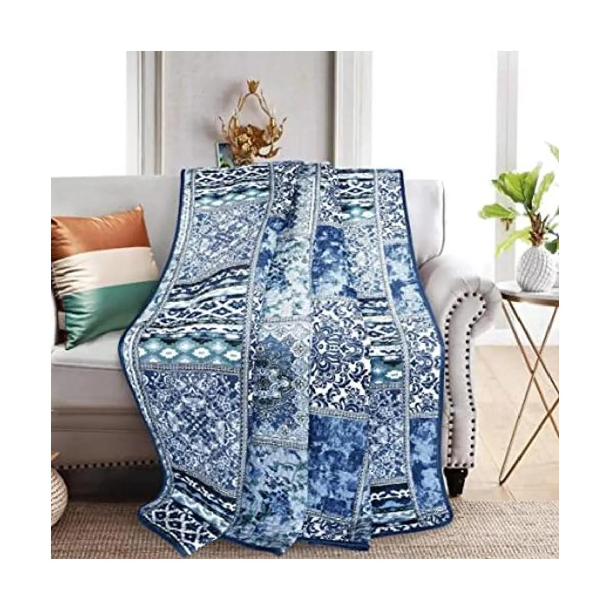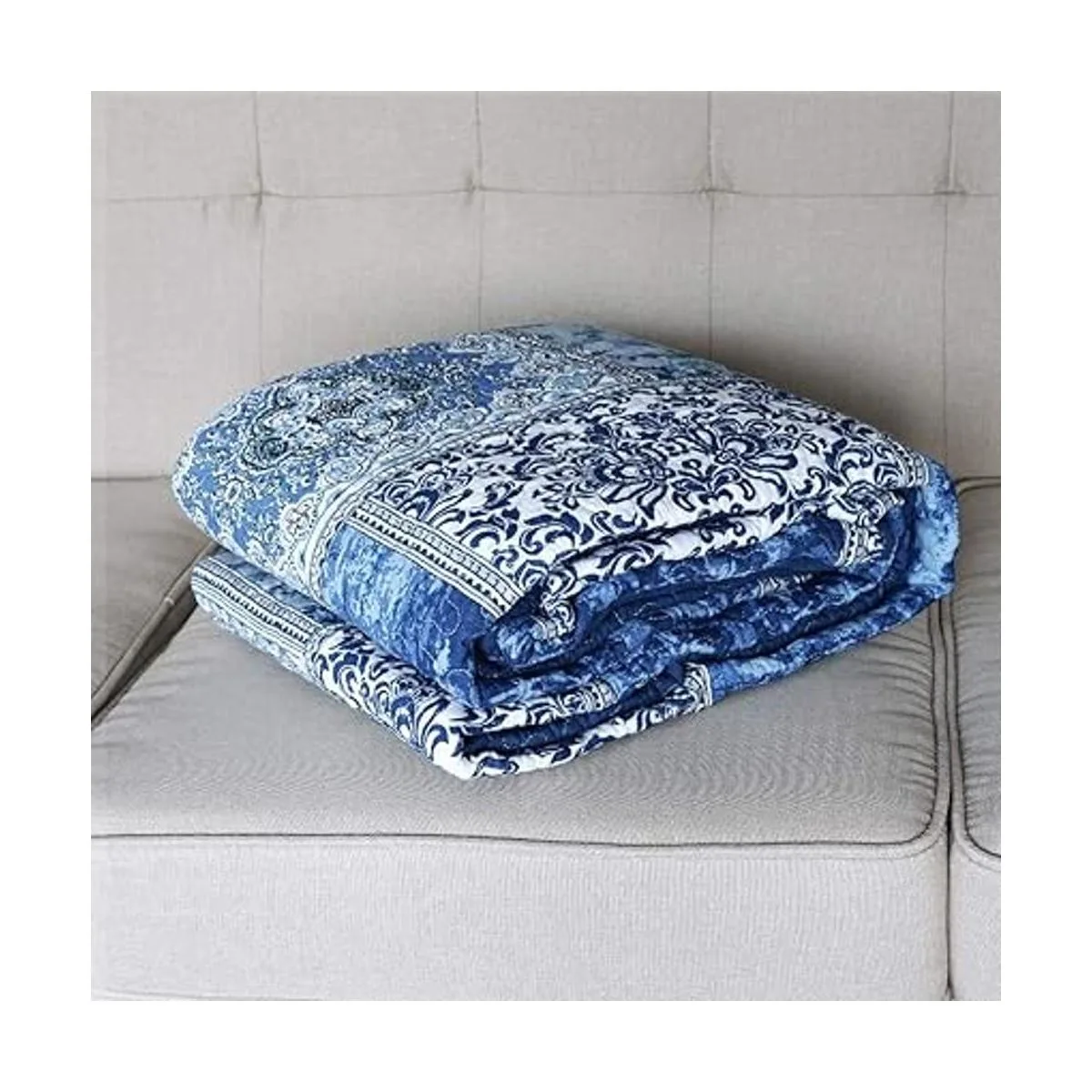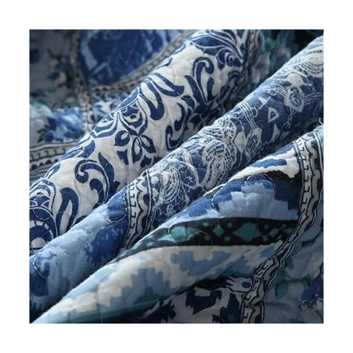 NEWLAKE Juego de colchas de algodón, juego de cubiertas de retazos, reversible, patrón azul clásico bohemio