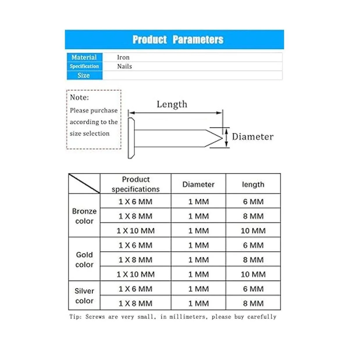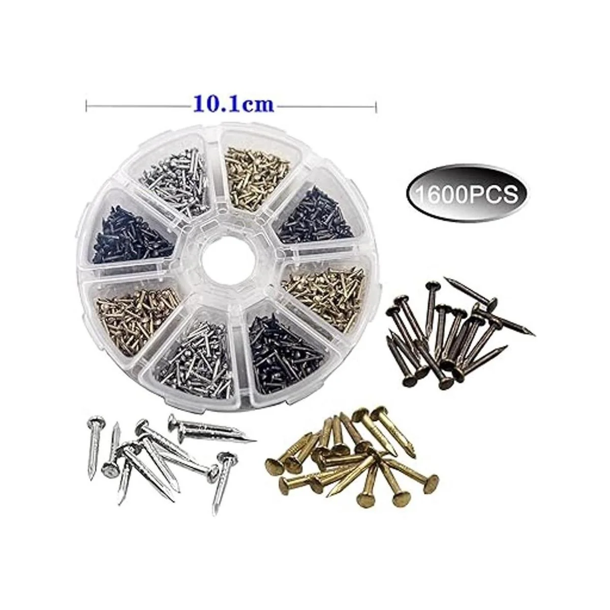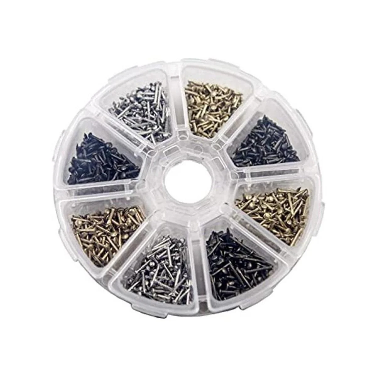 Combinación de clavos pequeños, dorado/plateado/bronce. Tamaño: 0.039 x 0.236 in longitud de clavo 0.236 in, diámetro de rosca: 0.039 in 0.039 x 0.315 in longitud de clavo 0.315 in, diámetro de rosca: 0.039 in 0.039 x 0.394 in longitud de clavo 0.394 in, diámetro de rosca: 0.039 in 8 estilos / cada 200 unidades, un total de 1600 unidades. Los tornillos son pequeños, en milímetros, ten cuidado de comprar 0.039 in mm 0,0,0,0,03999 in pulgadas