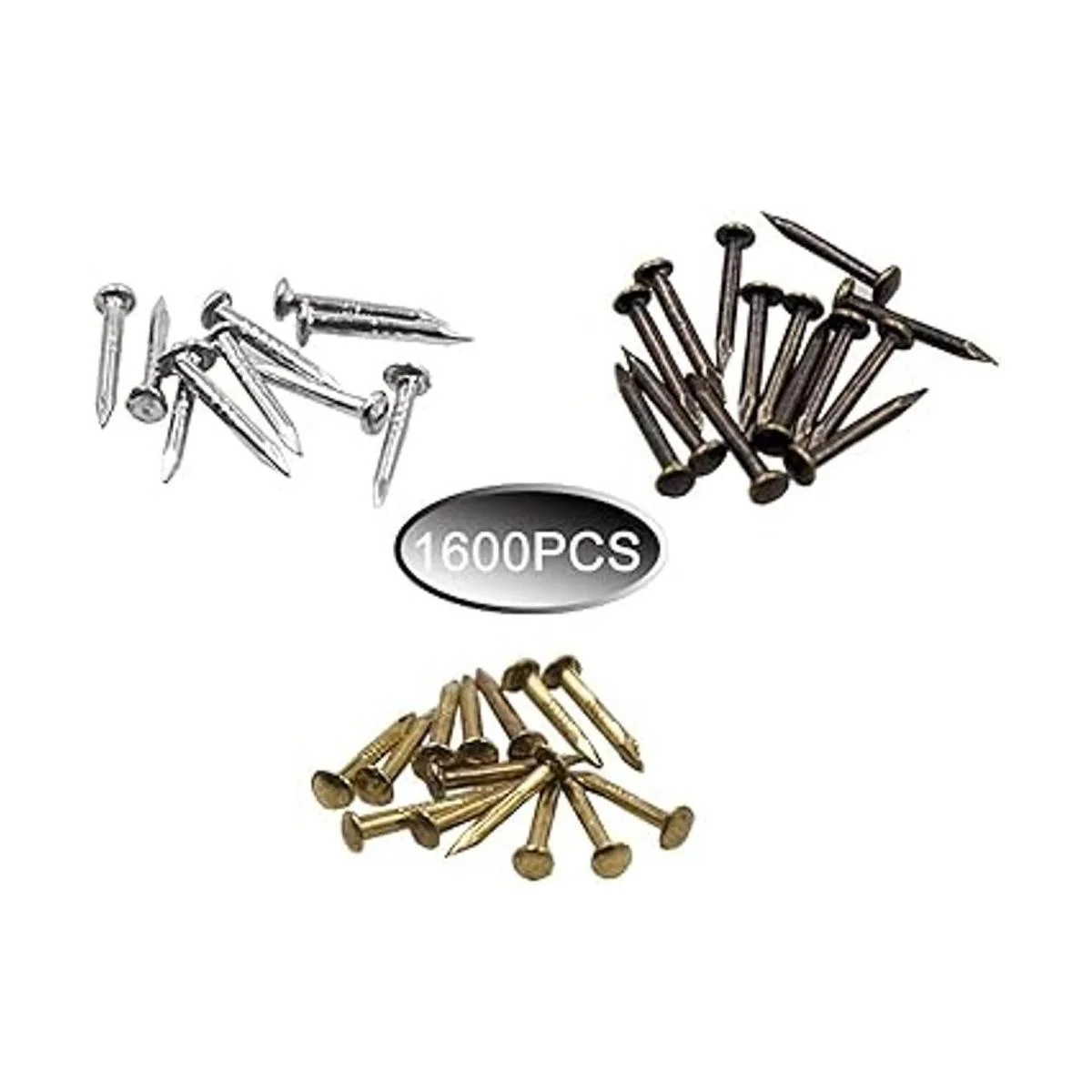 newlng Uñas pequeñas, tornillos de madera, compactos, antiguos, accesorios de caja decorativa para bricolaje, mini uñas doradas, plata, bronce de 0.039 x 0.236 in, 0.039 x 0.315 in, 0.039 x 0.394 in, 1600 unidades