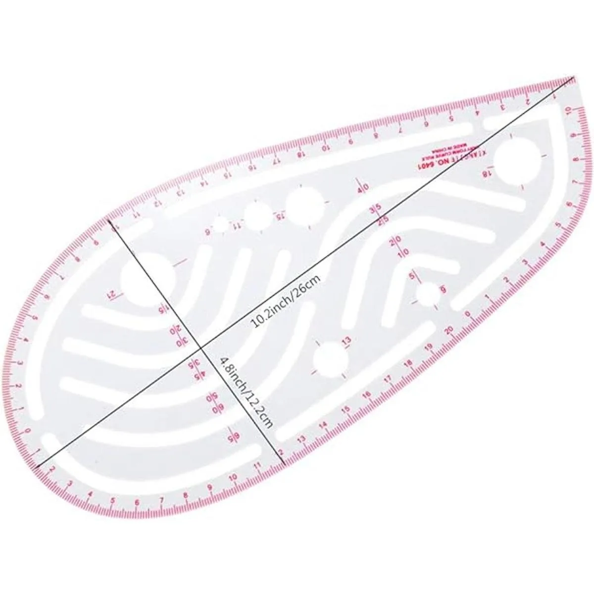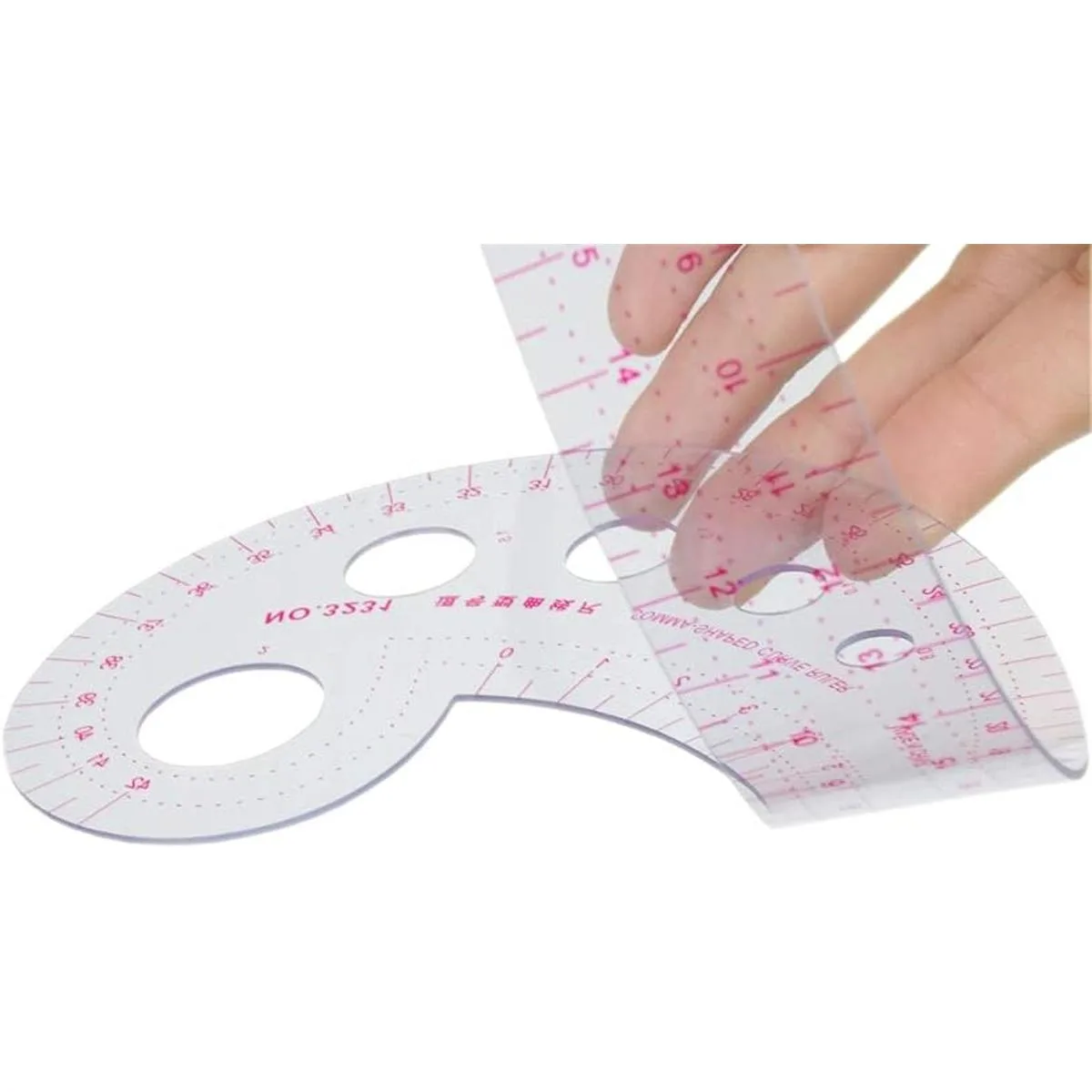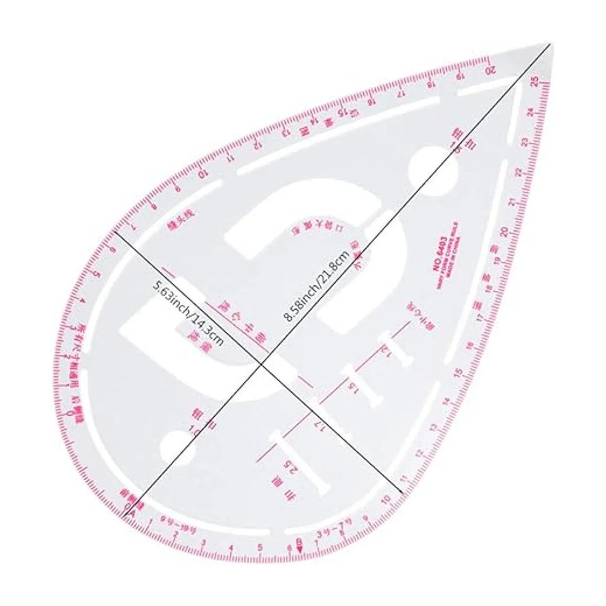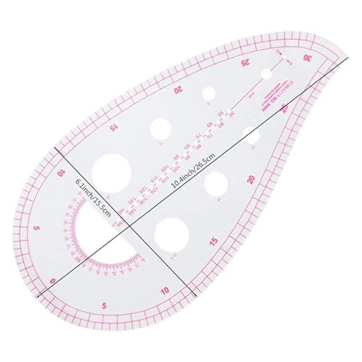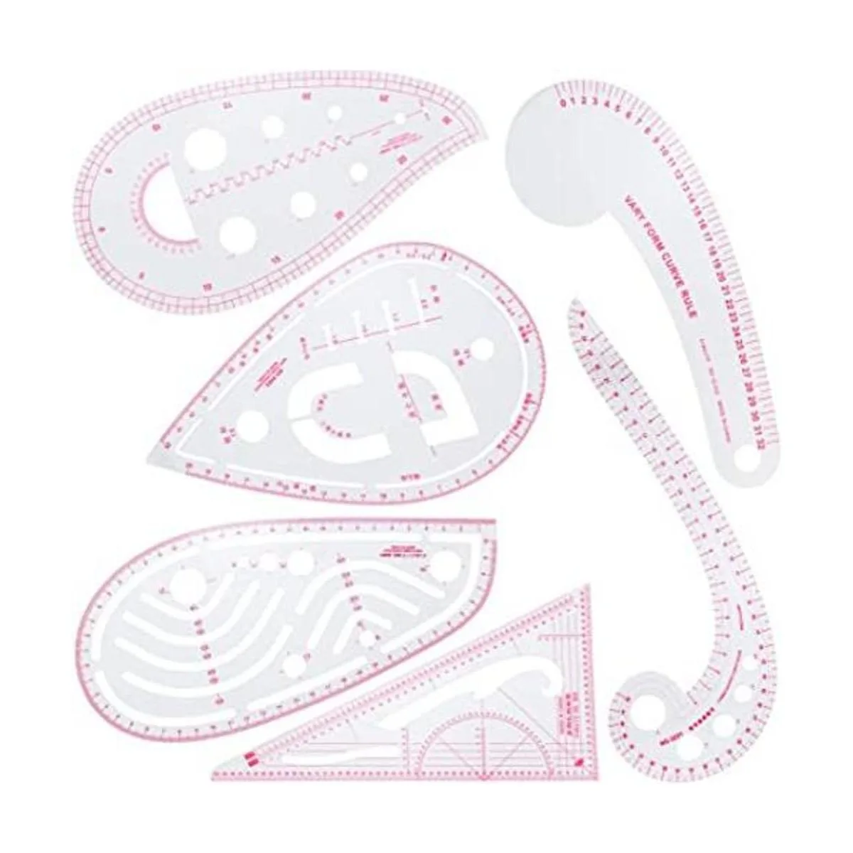 Juego de 6 reglas de costura francesas: 1 triangular, 1 regla de coma, 1 regla semiredonda, 1 regla multifunción, 1 regla de forma variada, 1 regla de botón, 6 piezas en total.