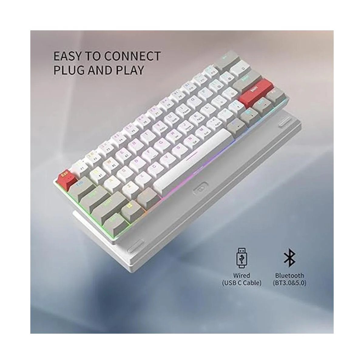 NEWMEN GM610 Teclado mecánico inalámbrico para juegos, 60 , teclado con cableBluetooth con teclado adicional, retroiluminación RGB, 61 teclas antifantasma, programable, intercambiable en caliente, para Windows Mac Android interruptor rojo