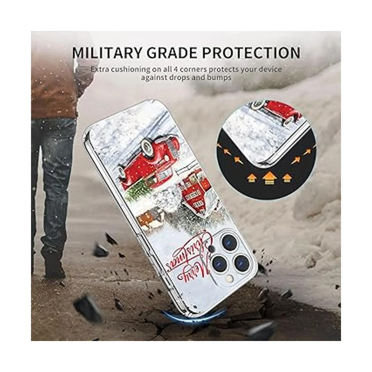Newseego Compatible con iPhone 13 Pro Funda de Navidad, Serie a prueba de golpes, policarbonato duro antiamarillo TPU Bumper Cover Protector para Niñas Niños Lindo Feliz Coche Rojo