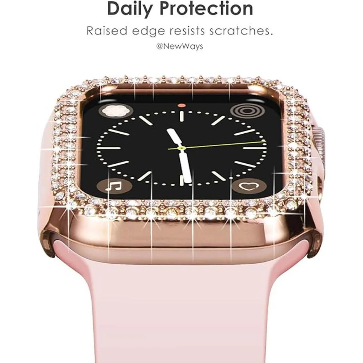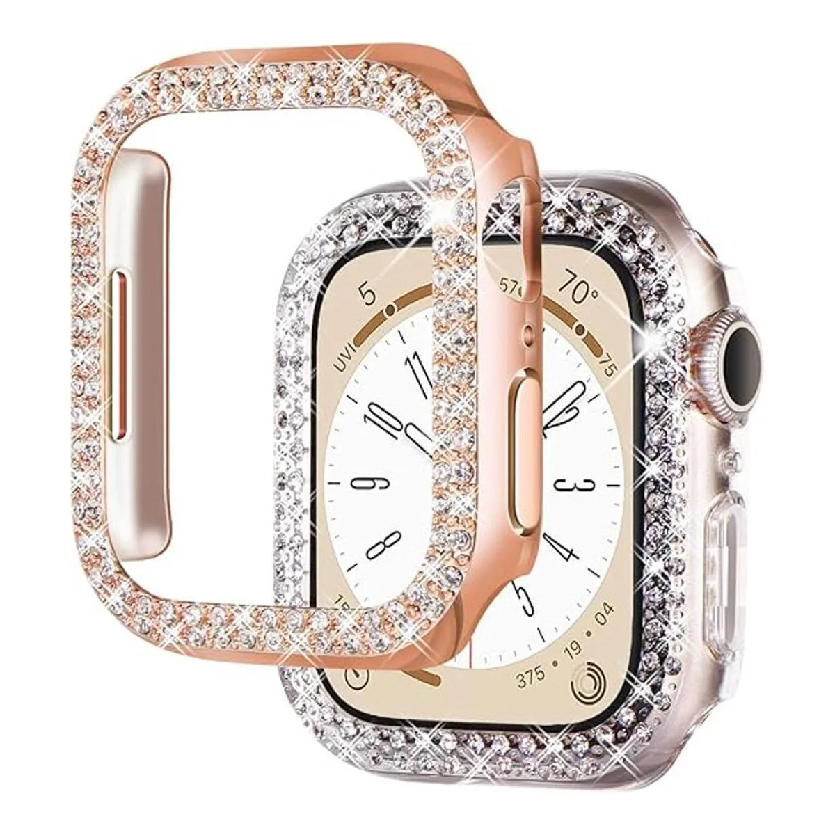 NewWays Paquete de 2 fundas brillantes compatibles con Apple Watch de 1.614 pulgadas, parachoques protector para iWatch Series 7 1.614 pulgadas, oro rosatransparente