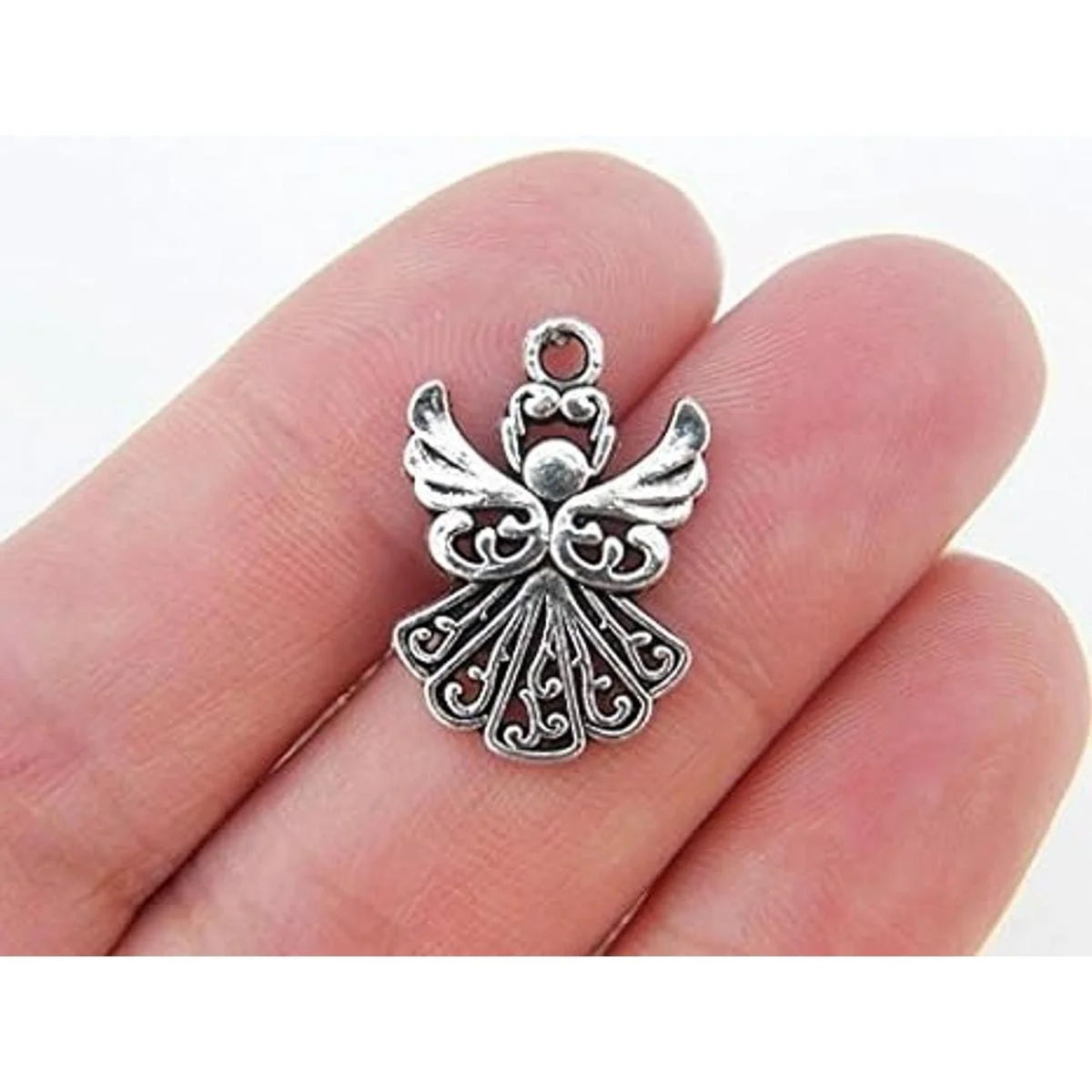 Colgante de plata y ángel, ángel, plata tibetana, ngel Encanto, suministros de joyería de plata, colgante de plata 21 x 14 mm Juego de 20 Angels ns681