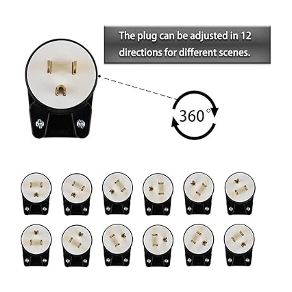 ngulo recto Nema 515P 15A 125V AC Plug, UL CUL Fácil montaje 90 grados EE.UU. Canadá Masculino DIY Rewirable 12 direcciones Conector AC ajustable…