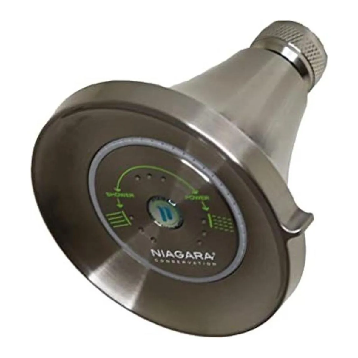 Niagara Conservation Cabezal de ducha fijo N3915BN de 1.5 GPM Earth Luxe de alta eficiencia que cumple con California en níquel cepillado, 3 modos de pulverización ajustables con 9 chorros de masaje Certificado Watersense