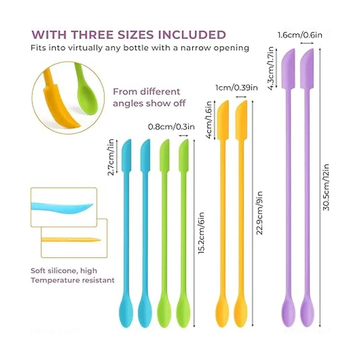Material seguro: los mini palillos de agitación están hechos de material de silicona de alta calidad con buena durabilidad. Son reutilizables, seguros, no tóxicos, saludables y perfectos para manejar detalles y limpiar las esquinas de los recipientes. Esta herramienta práctica y compacta es imprescindible para llevar contigo dondequiera que vayas.