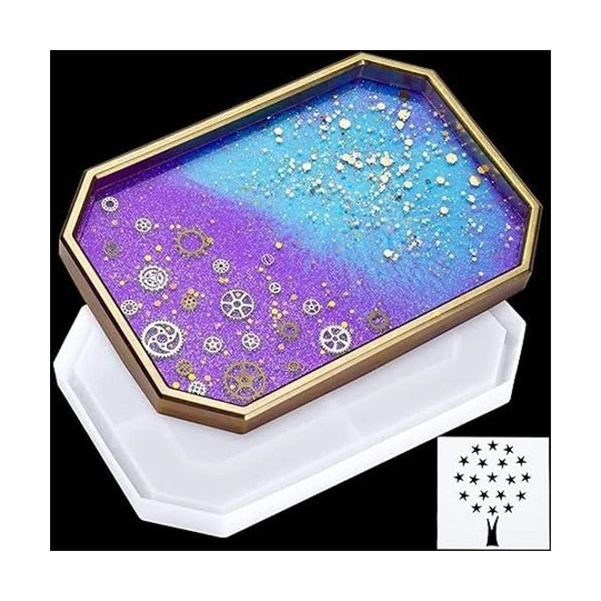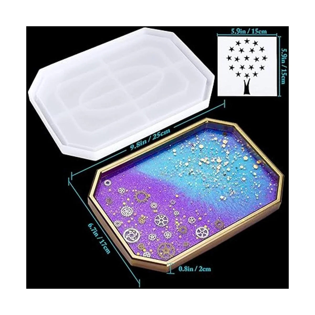 Bandeja de tamaño grande para satisfacer tus necesidades: bandeja octogonal 10.0 x 7.0 x 0.8 in. Molde de silicona para manualidades de resina. Si estás buscando desesperadamente un molde de fundición para bandejas funcionales y decorativas, este es el tuyo. Ideal para hacer bandejas enrollables, bandejas de servir, bandejas decorativas, otras decoraciones del hogar, adornos de oficina, accesorios de negocios y regalos para las personas que amas con toda tu imaginación creativa. Una herramienta perfecta para todos los artesanos.