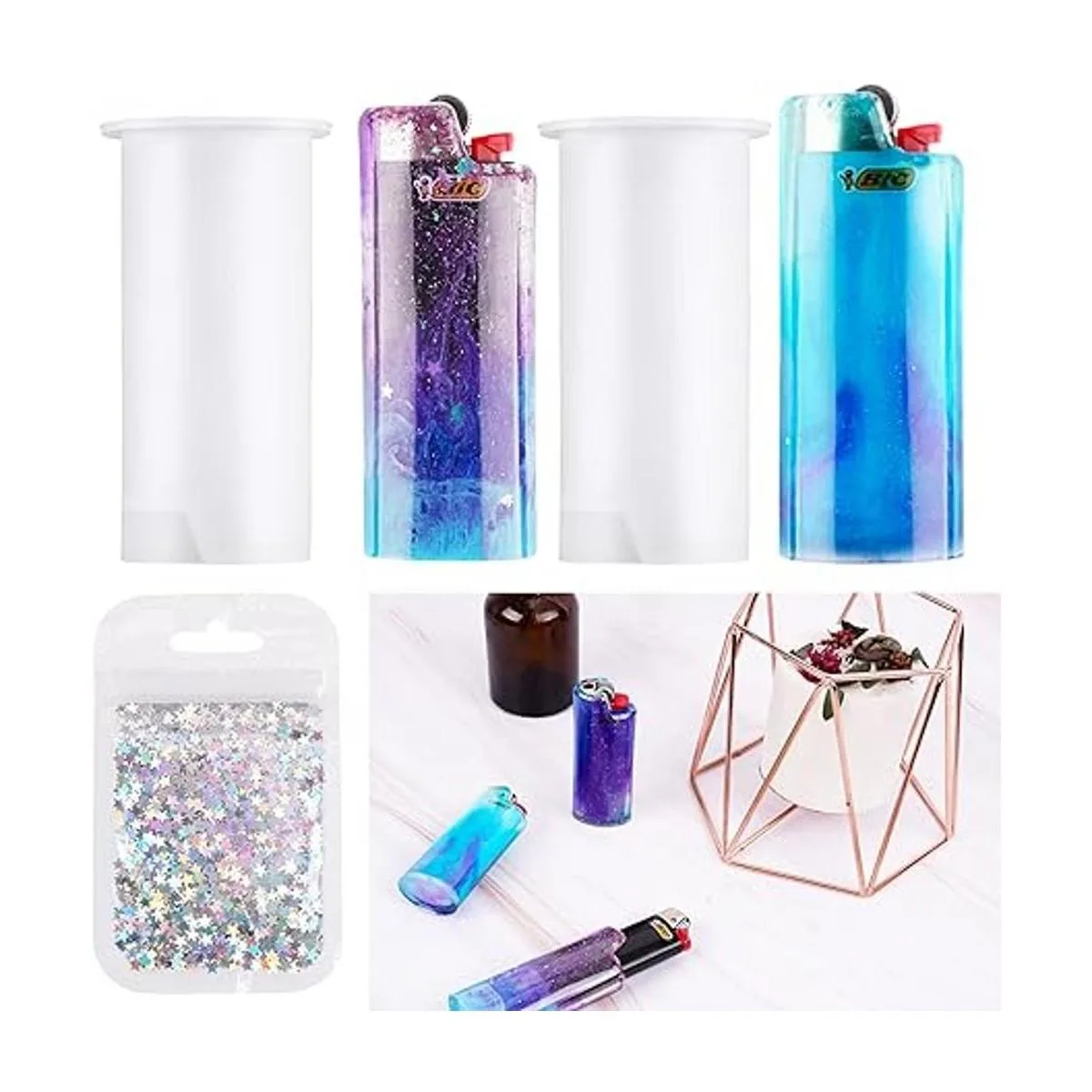 NiArt Juego de 2 moldes de silicona de resina para manualidades, funda para encendedor compatible con BIC J6 tamaño completotamaño regular