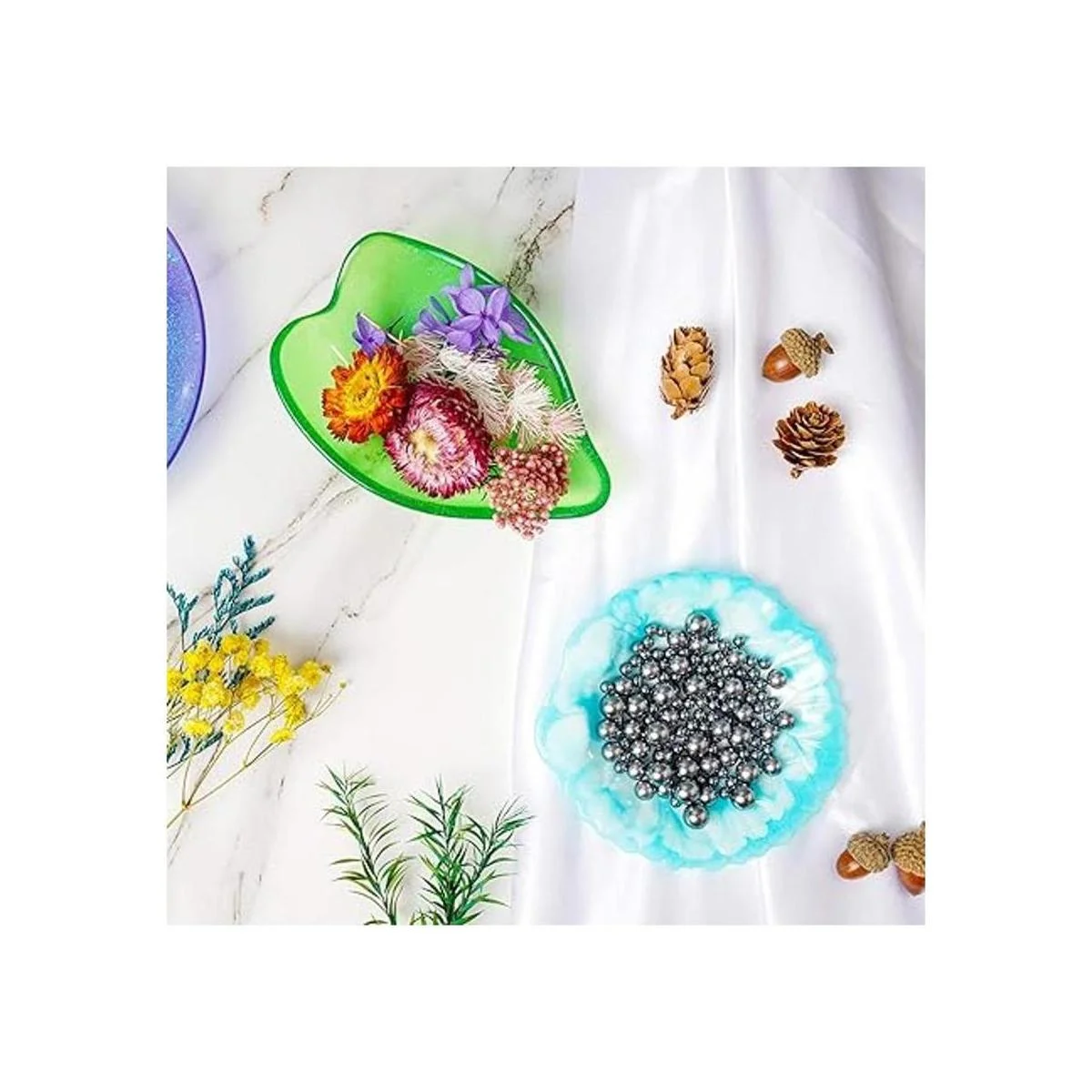 Artesanía de resina DIY: la resina epoxi es divertida y fácil de producir artículos decorativos y funcionales que te harán sentir orgulloso. Cuando construyas tus platos de joyería de ágata únicos, añade adornos como purpurina, cuentas, diamantes de imitación, lentejuelas, flores secas o mezcla la resina con pintura, micas, pigmentos normales o que brillan en la oscuridad para hacer que la obra de arte sea aún más impresionante. No todos los tipos de resina epoxi son aptos para alimentos. Los moldes no están diseñados para la fabricación de contenedores de alimentos o bebidas.