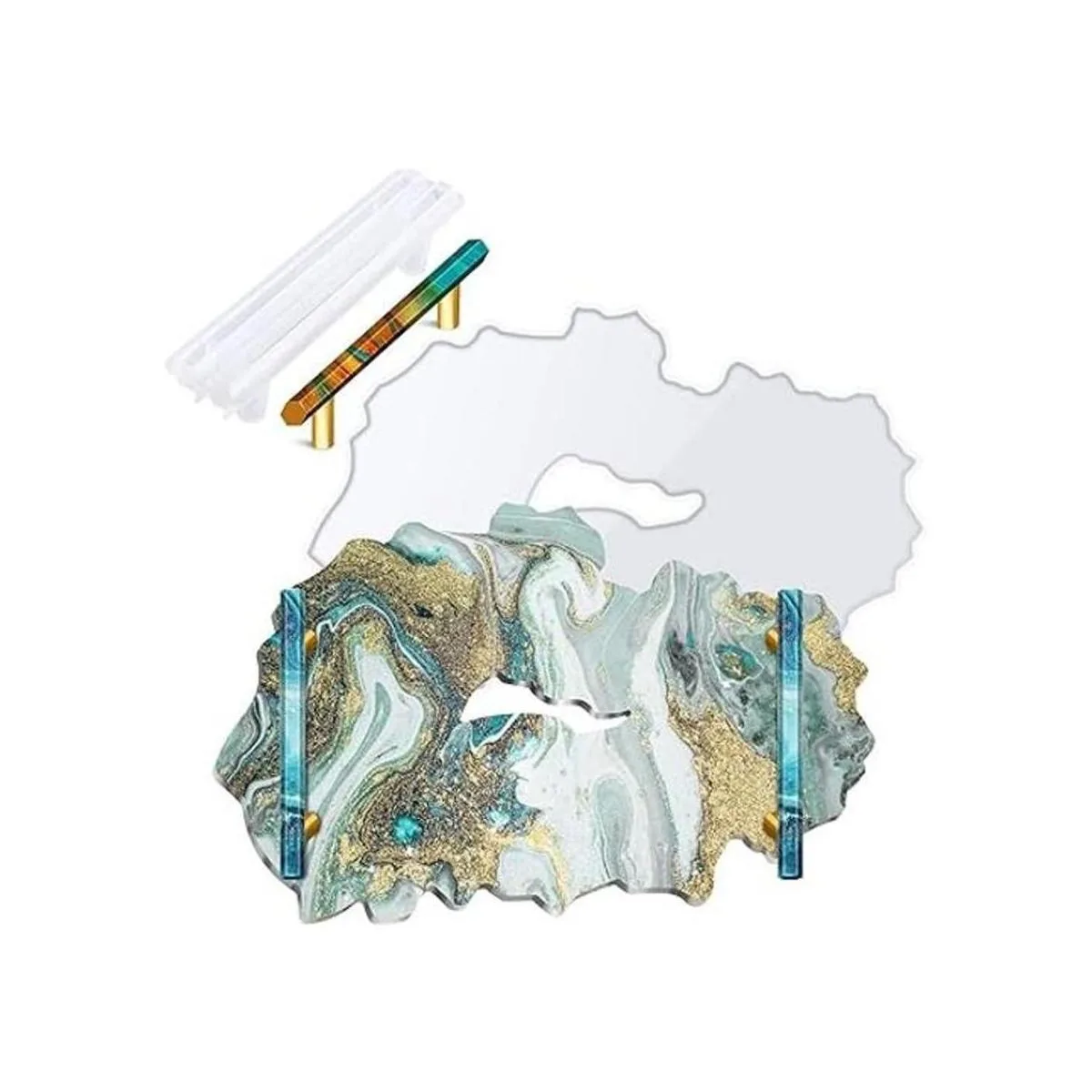 NiArt Molde de silicona suave de resina epoxi DIY Casting Craft Forma irregular Druzy gata Geoda Recorte bandeja para servir con 2 asas multipropósito placa placa vacaciones decoración hogar decoración artesanal ornamento arte