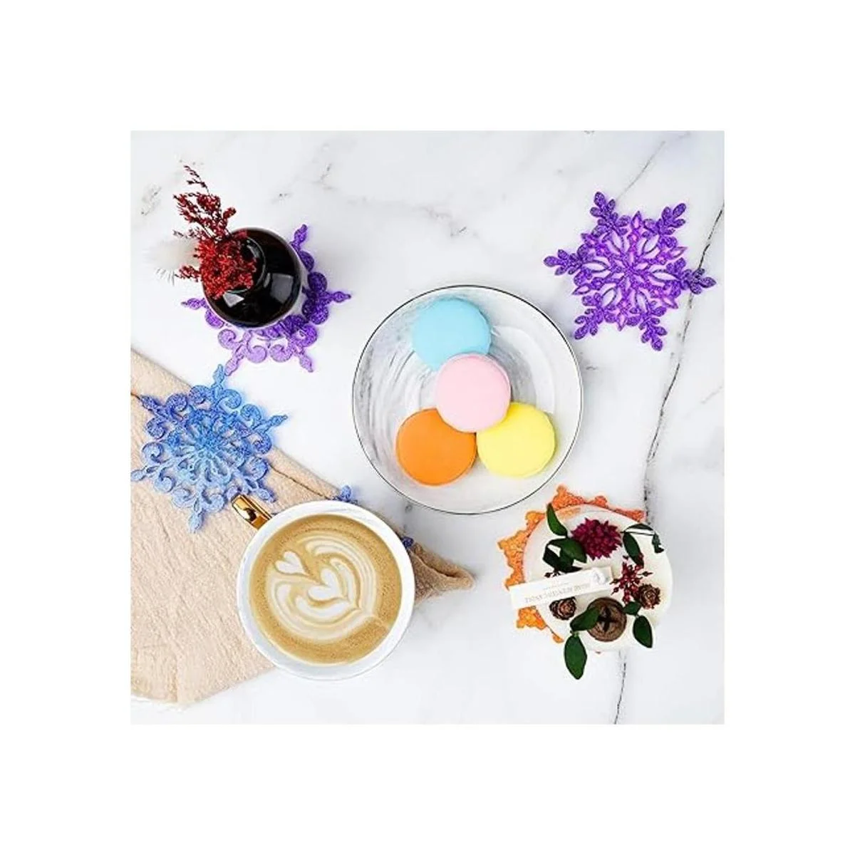NiArt Moldes para posavasos con diseño de copo de nieve de resina epoxi, 4 piezas de 3.9 in con bordes, decoración de manualidades, casas, restaurantes y vacaciones, posavasos, joyas, piedra aromática, molde para hornear